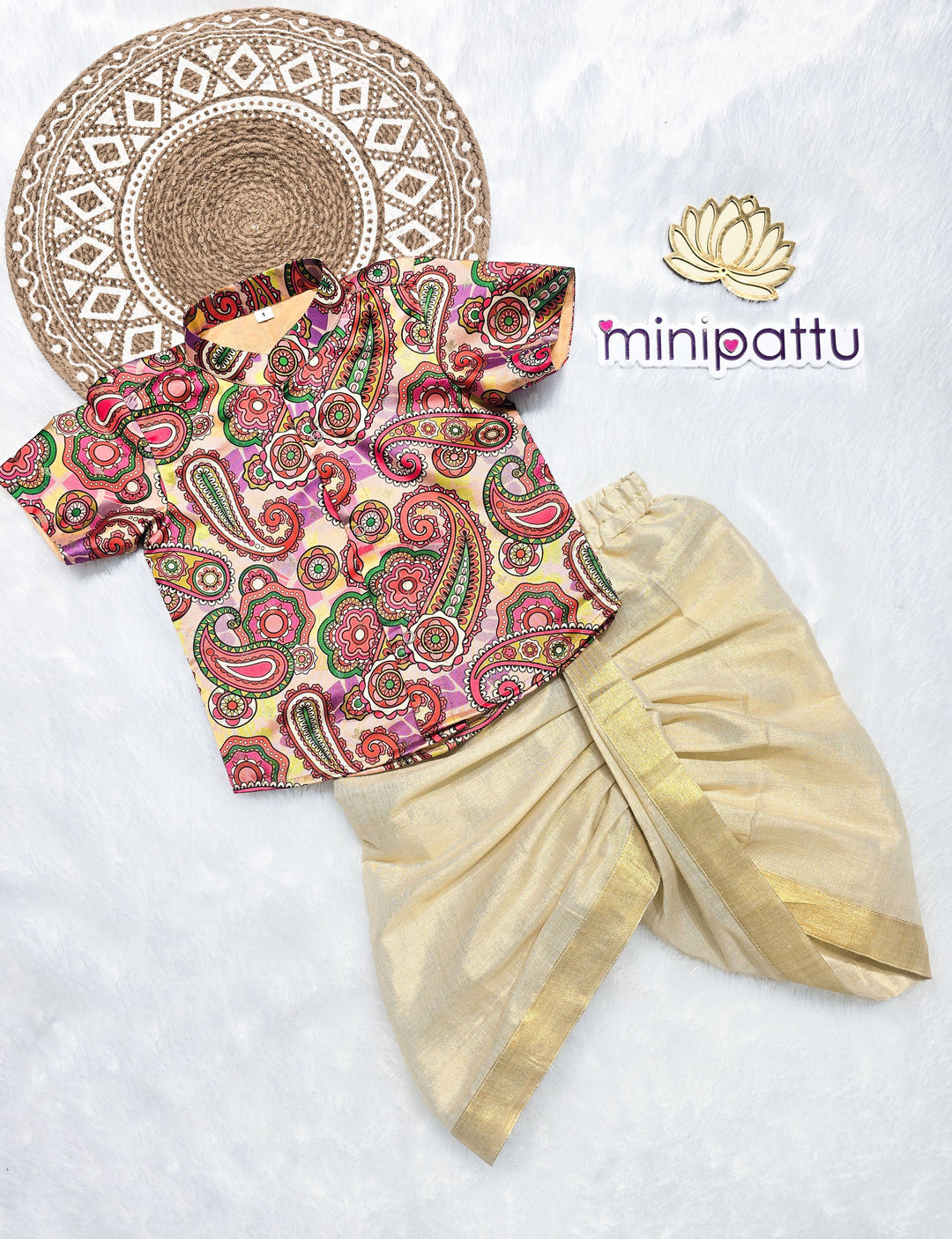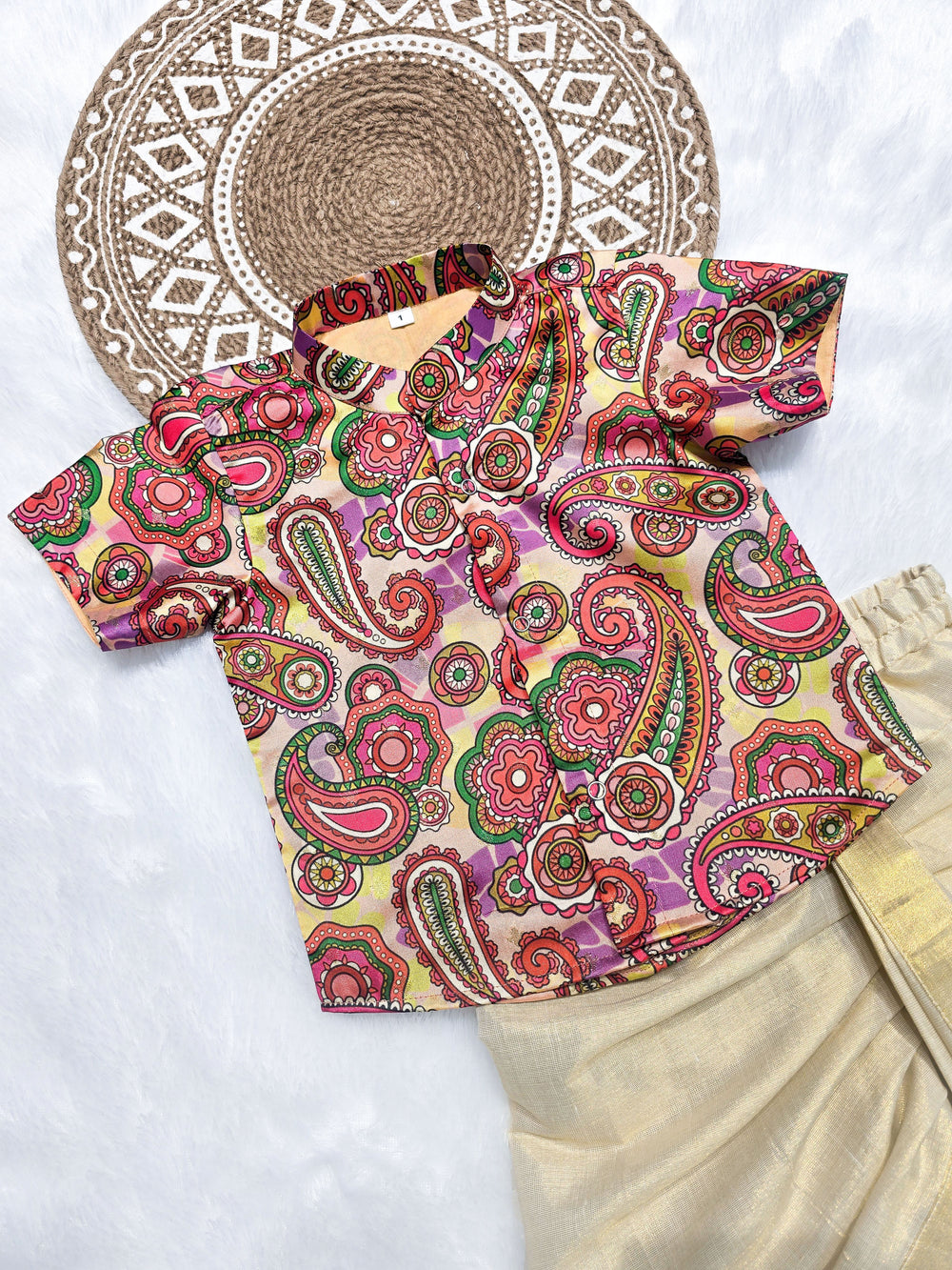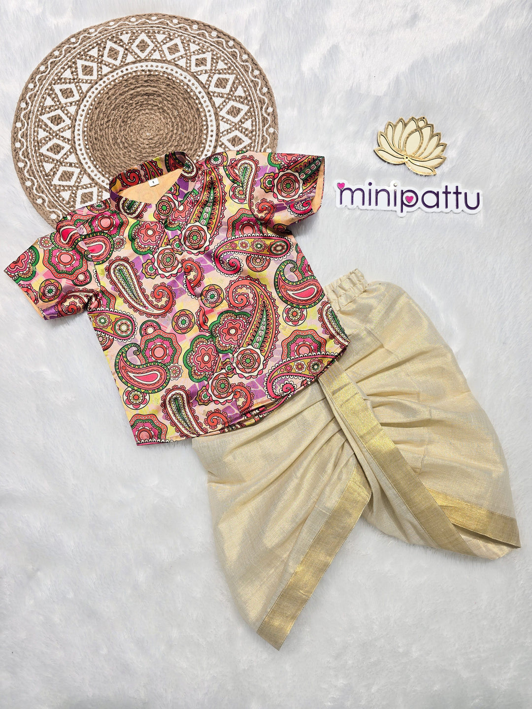 Adhvaith - Paisley Print Kurta & Dhothi Set