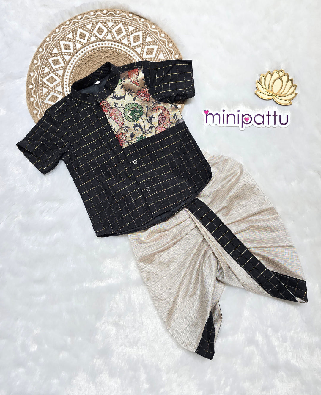 Raghu - Paithani Black Checks kurta & Dhothi Set
