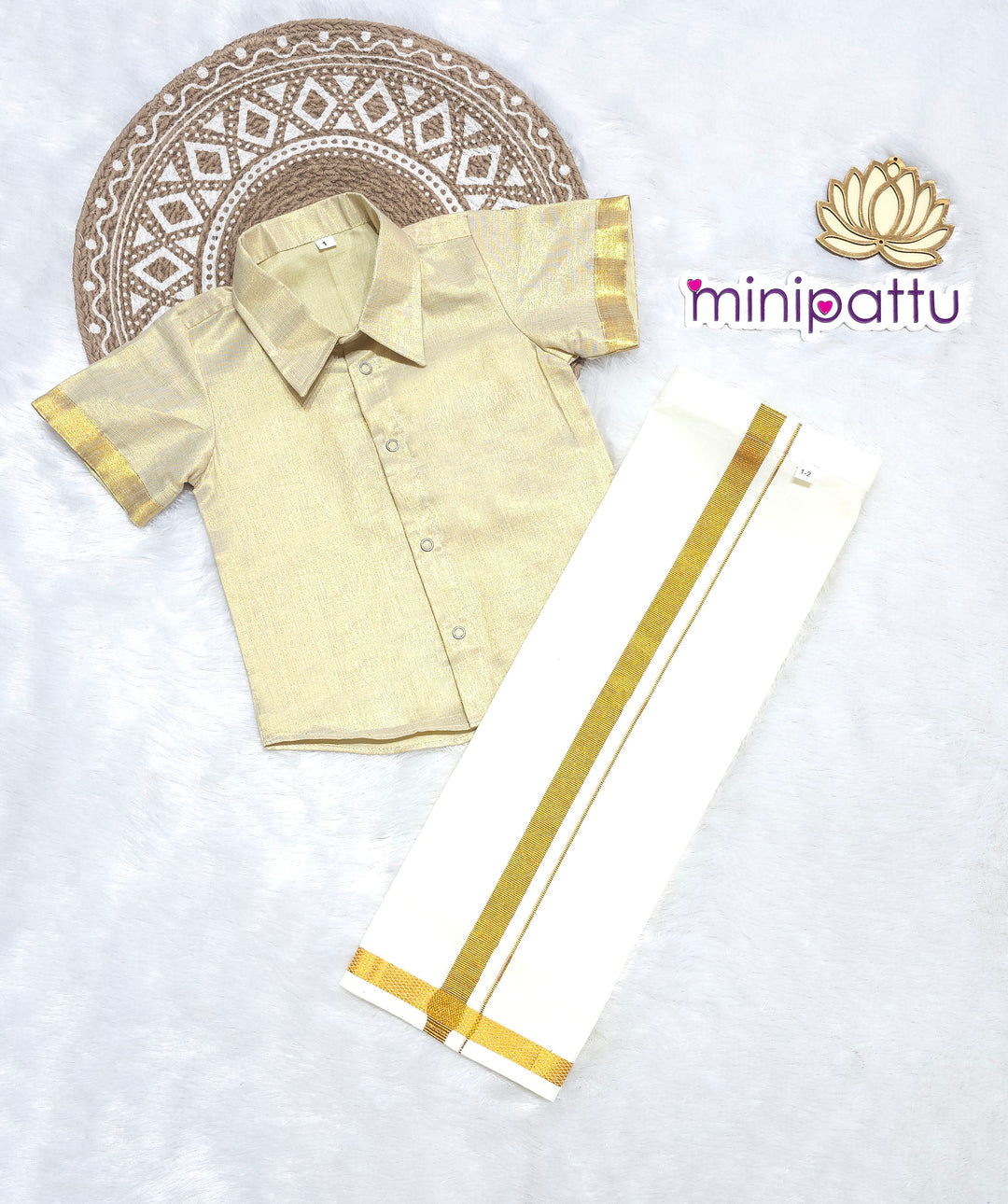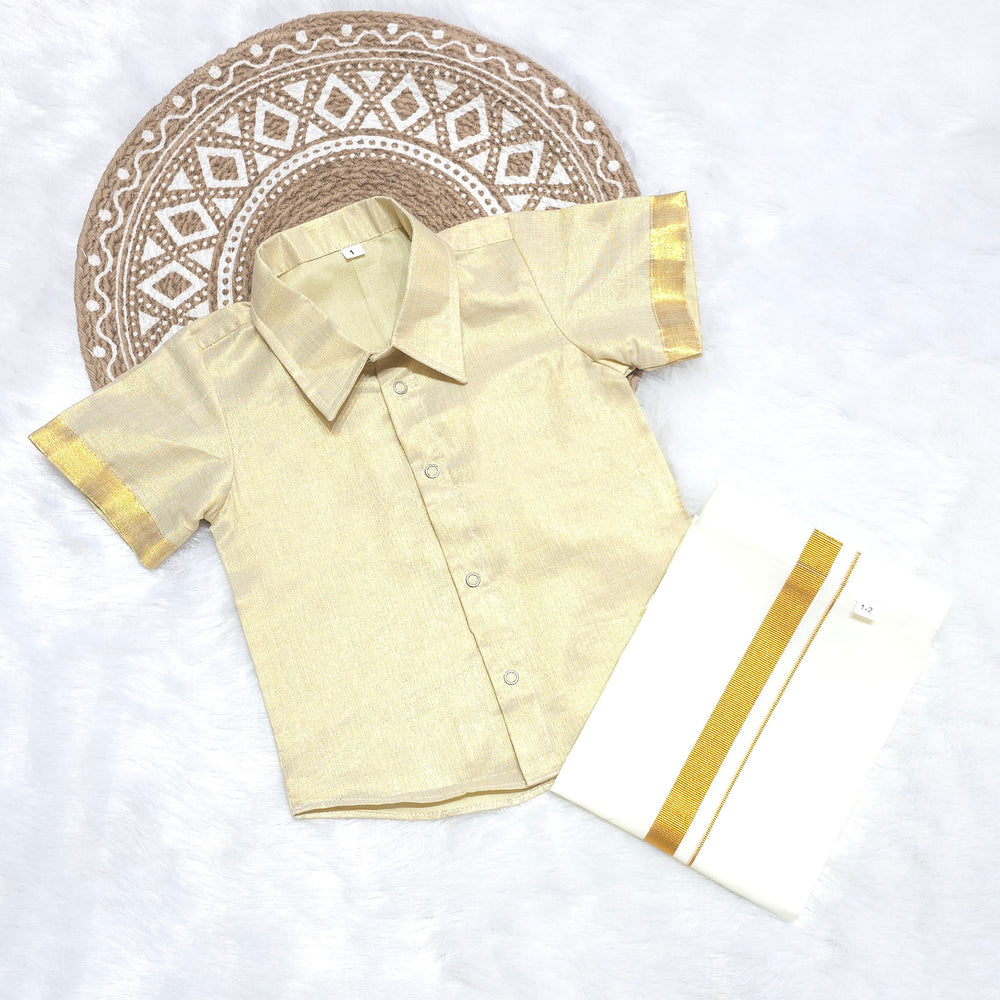 Abimanyu - Half White Gold Stripes Shirt & Vesti Set