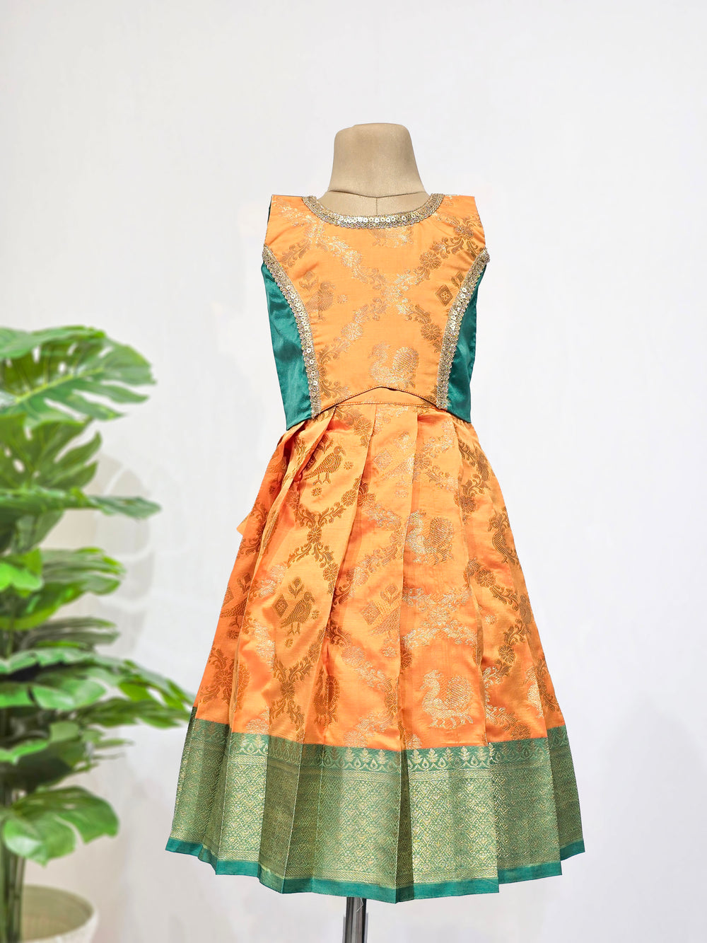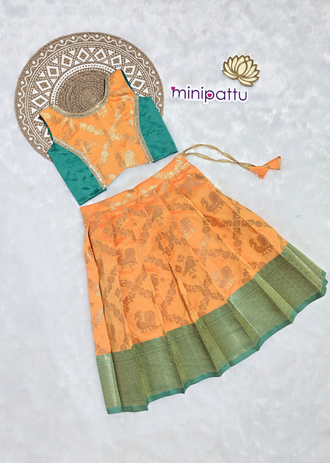 Srimathi - Teal Blue Peach Orange Designer Minipattu