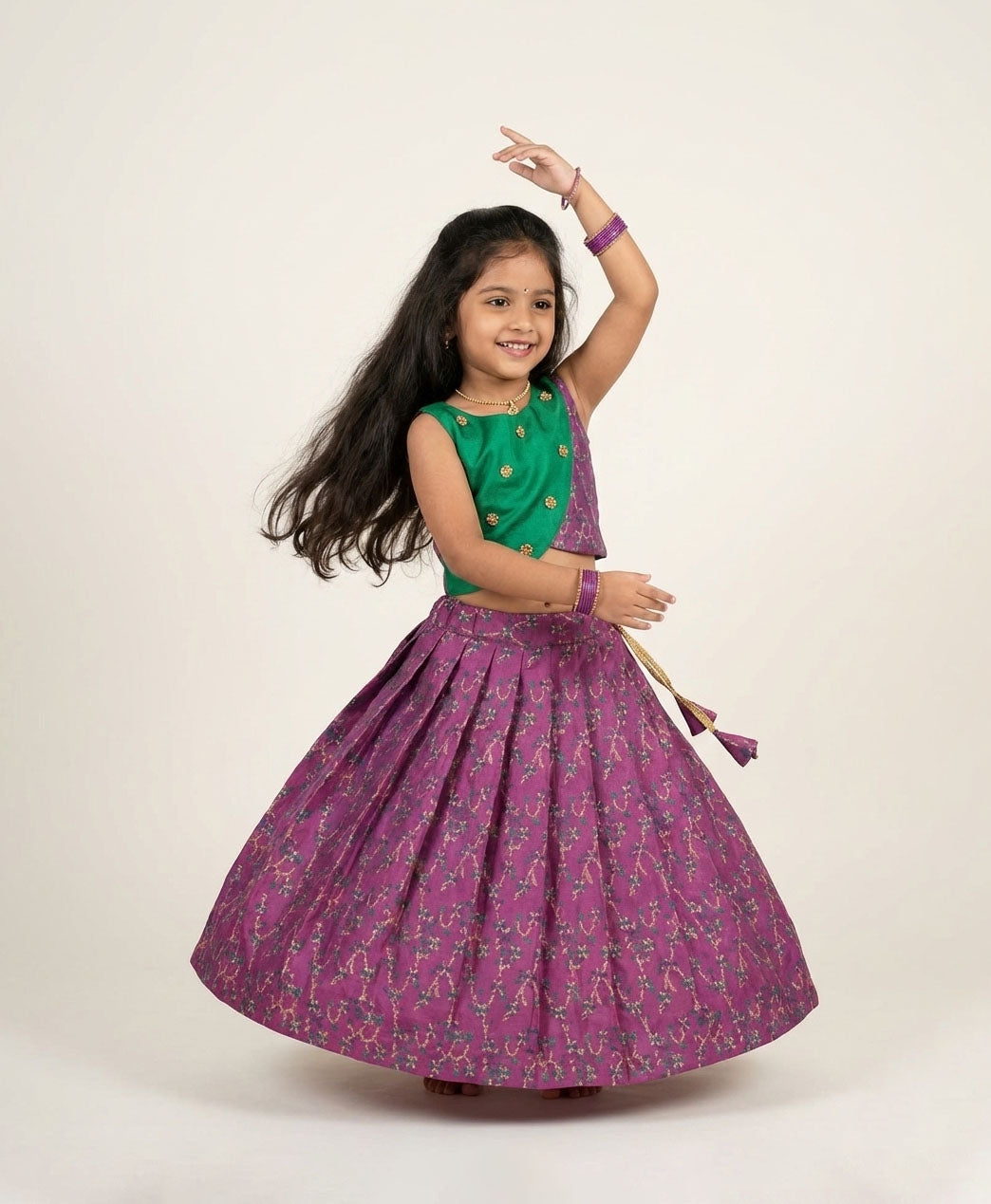 | Color: | Pranika - Green Purple Designer Minipattu |