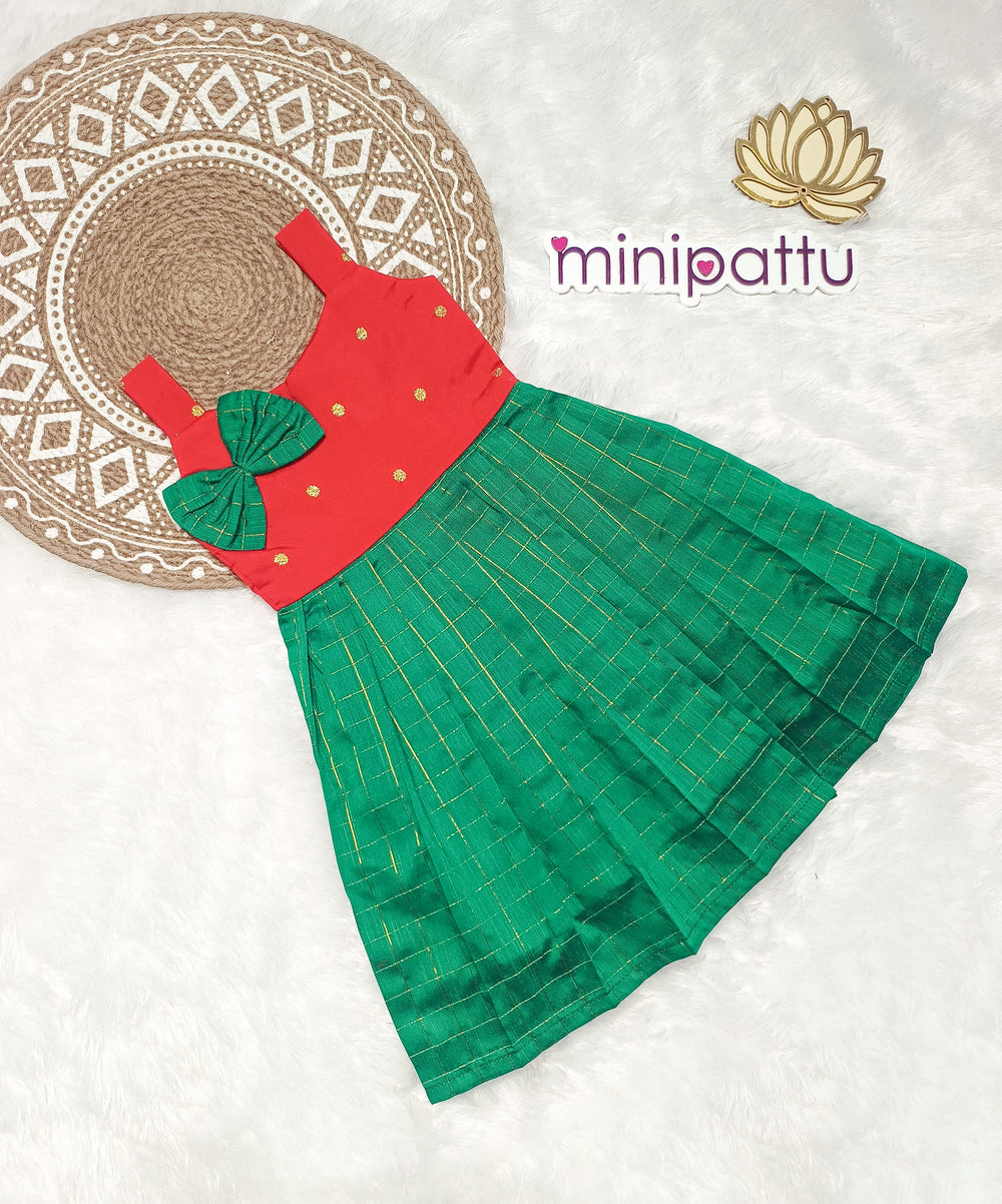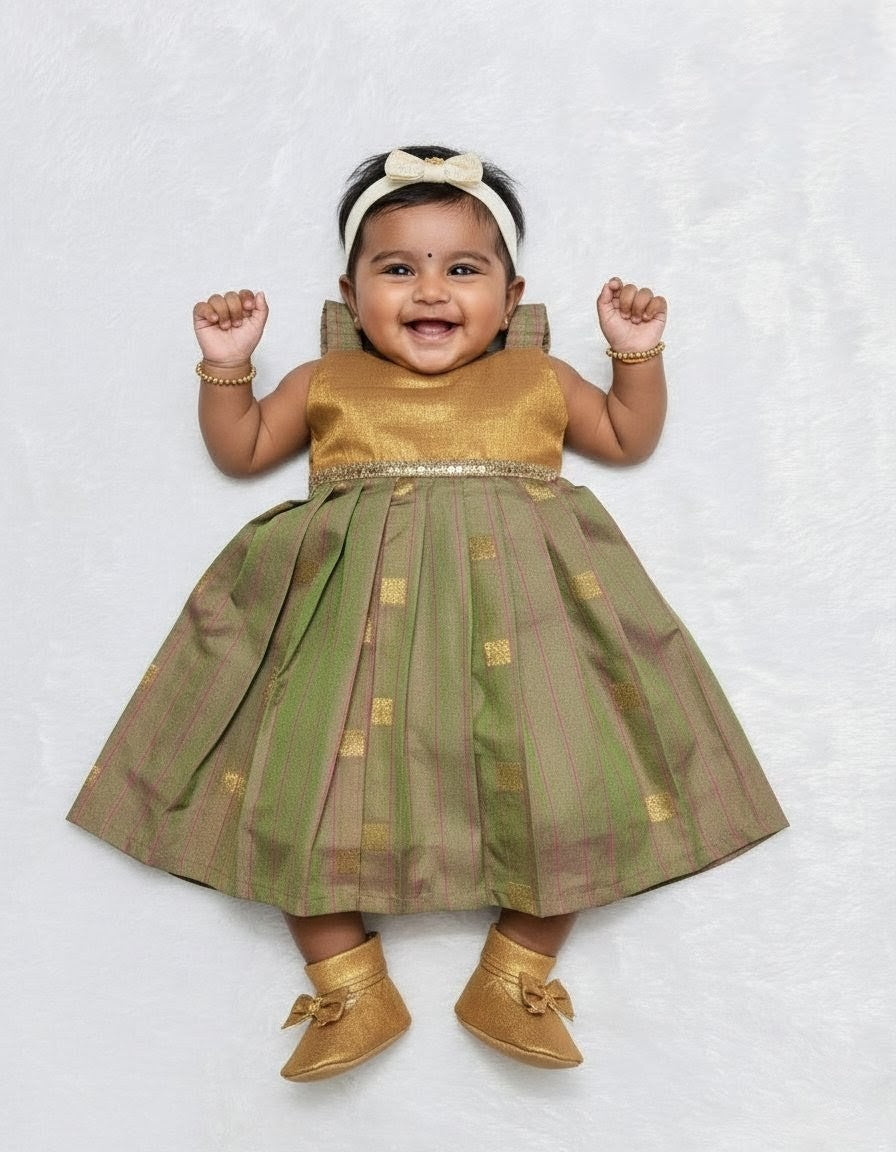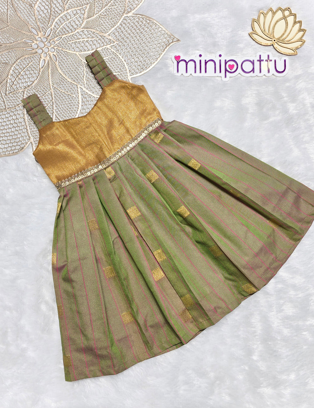 Nidhi - Leaf Green Blue Checks Frock Minipattu
