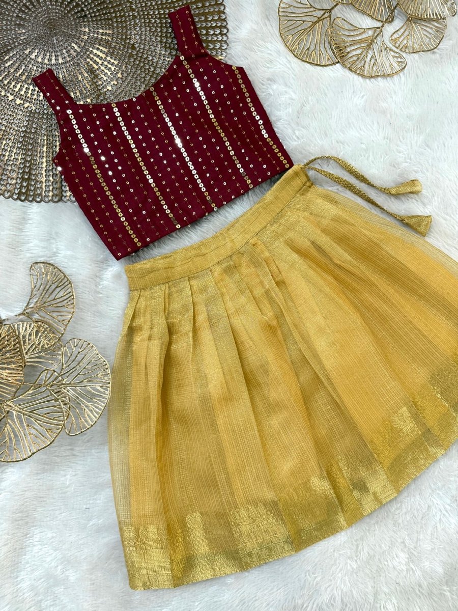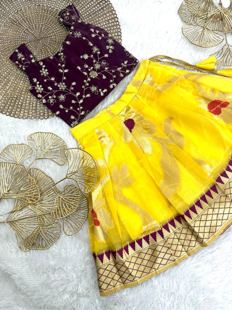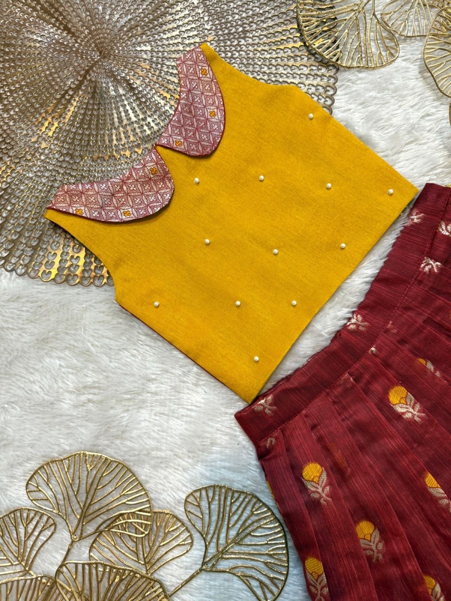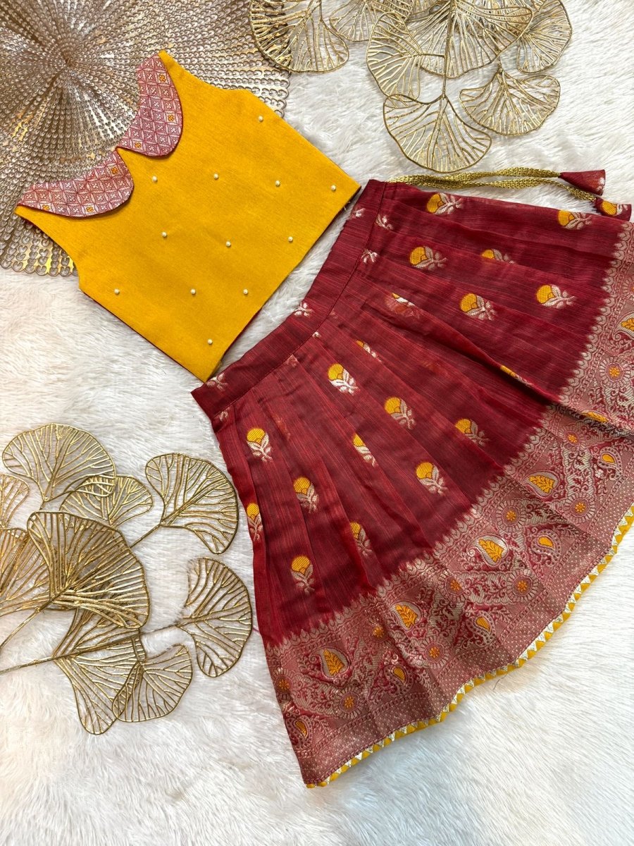 Nikita - Mustard Yellow Maroon Designer Minipattu