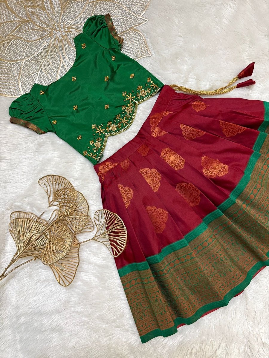 Rashmi - Dark Green Wine Designer Minipattu