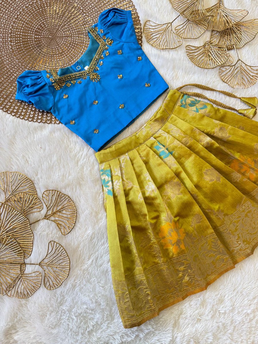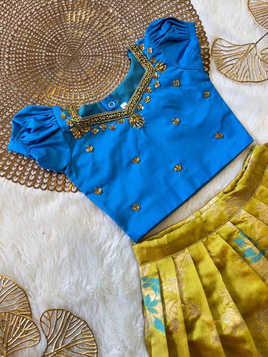 Tara - Blue Pastel Green Designer Minipattu