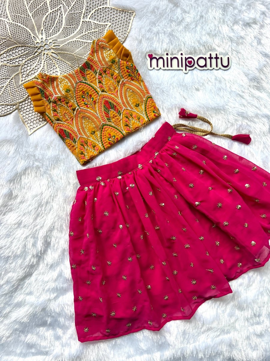 Anamika - Mustard Yellow Pink Designer Minipattu