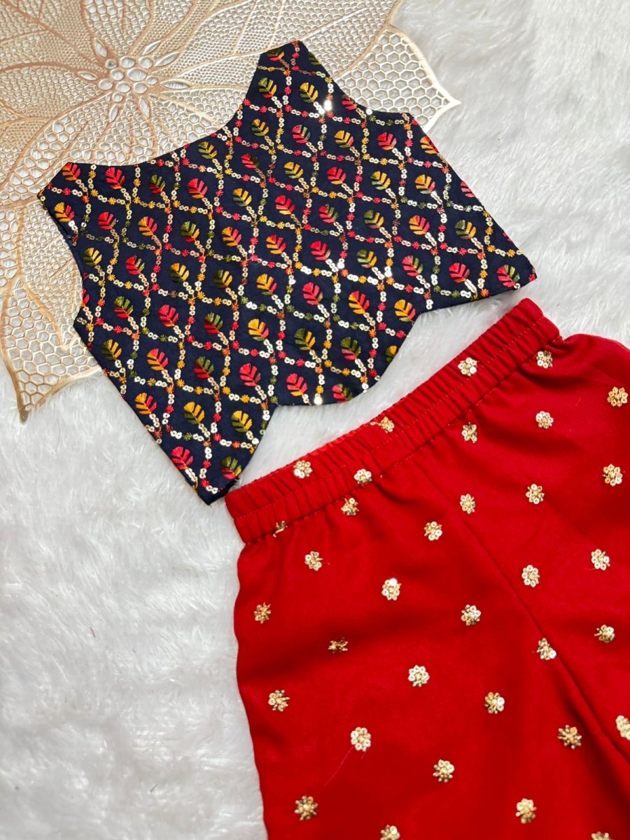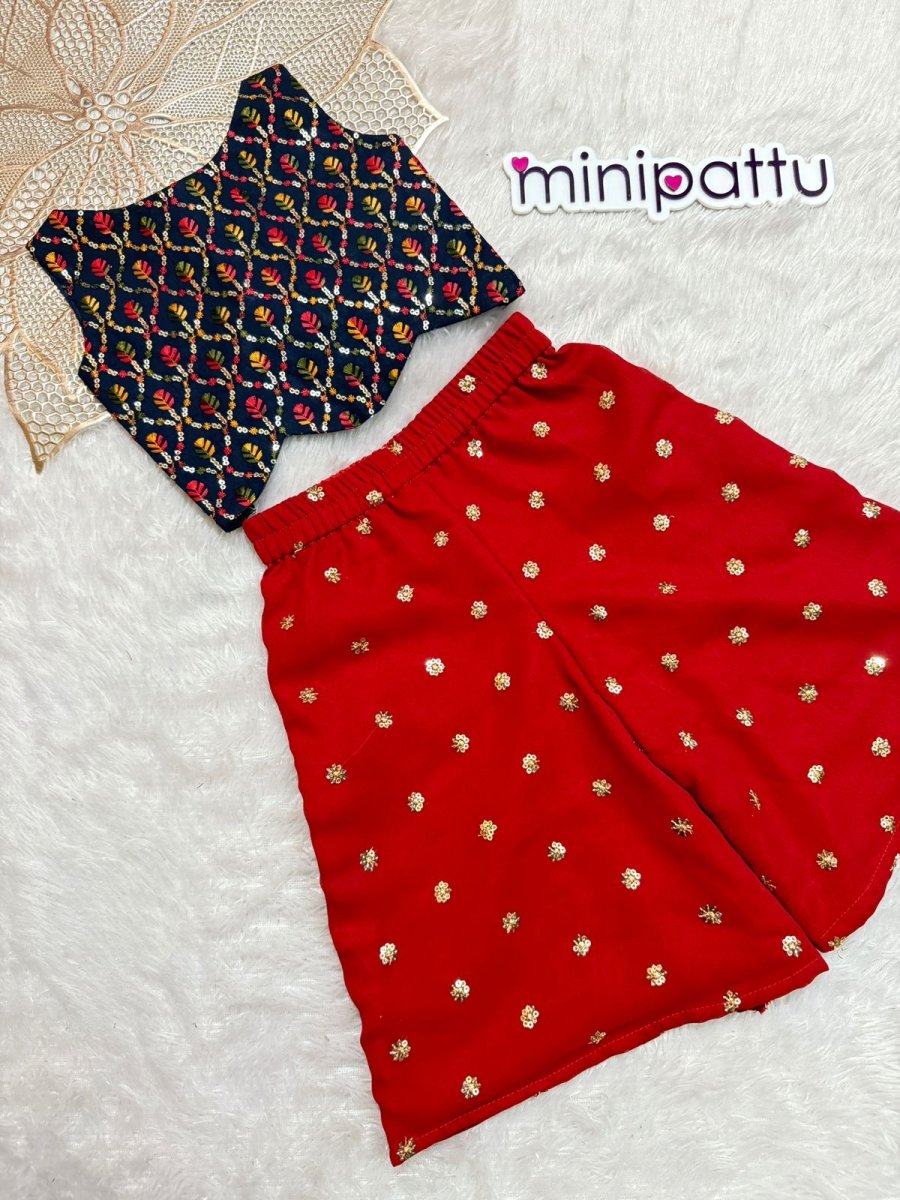 Shriya - Navy Red Designer Palazzo Minipattu