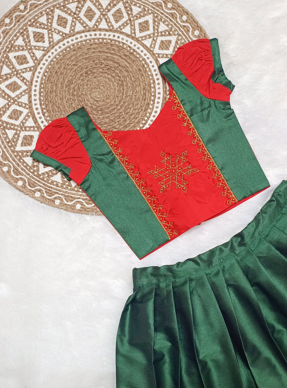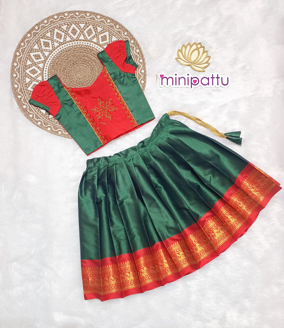 Anjali - Green Red Designer Minipattu