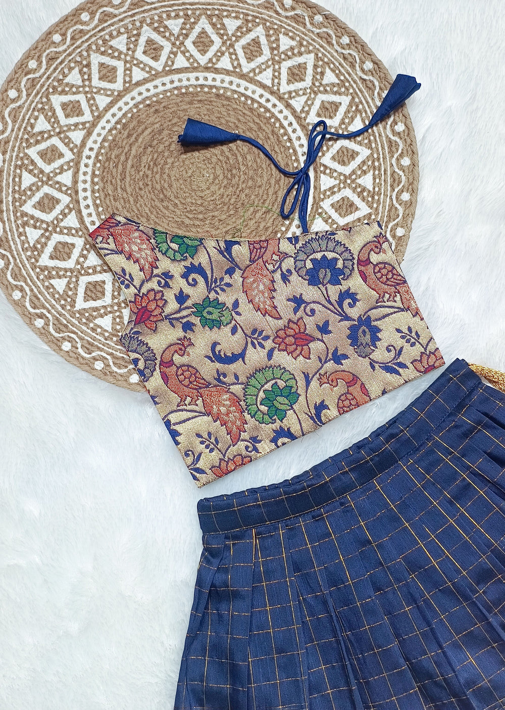 Paithani Checks Blue Designer Minipattu