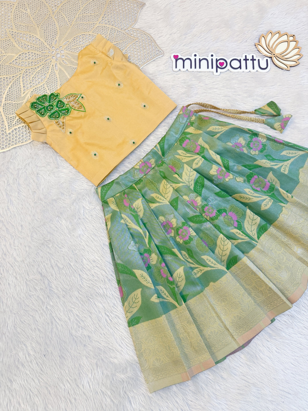 Dhanya - Beige Leaf Green Designer Minipattu