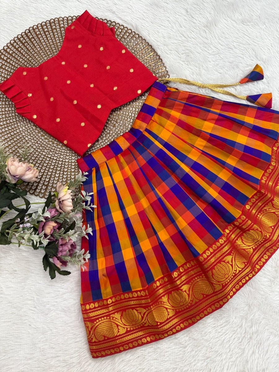 Vedika Red Checks Silk Minipattu