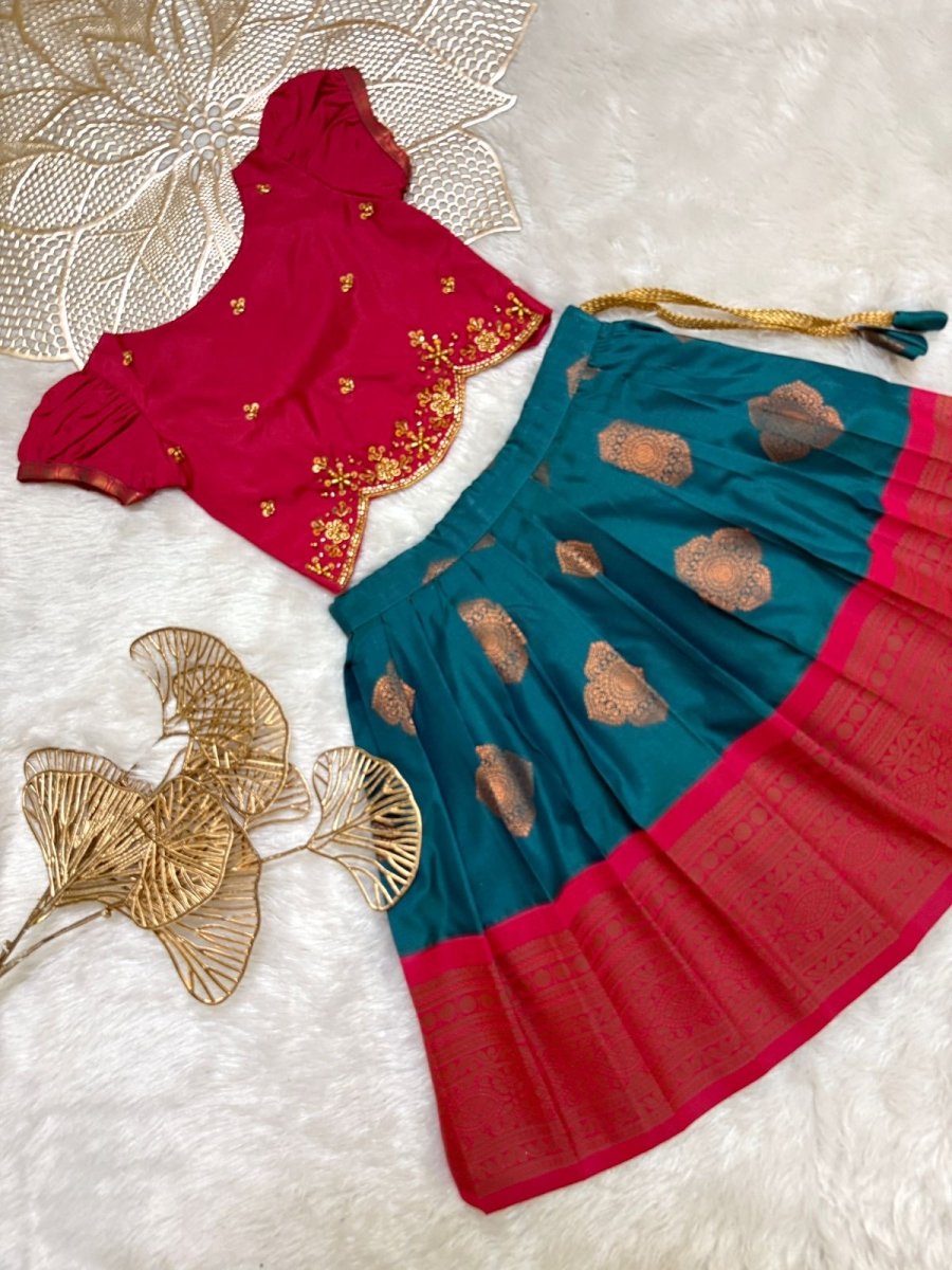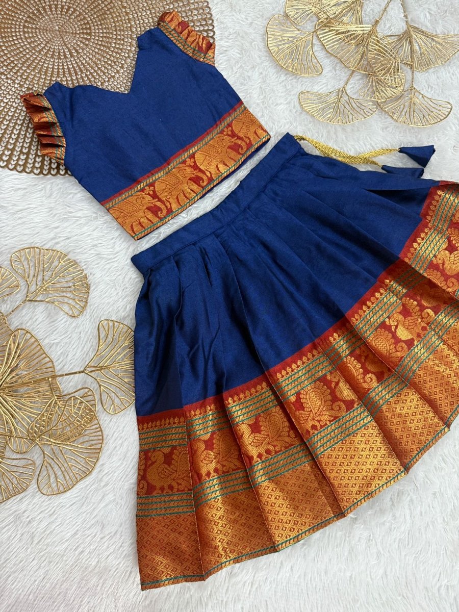 MiniPattu offers a delightful collection of traditional skirts paired with matching tops for kids. Our...