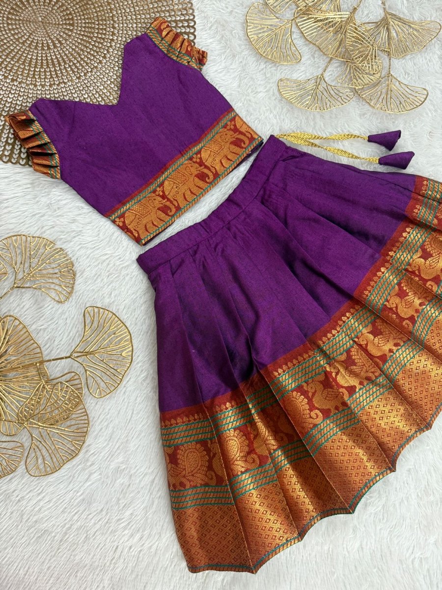 MiniPattu offers a delightful collection of traditional skirts paired with matching tops for kids. Our...