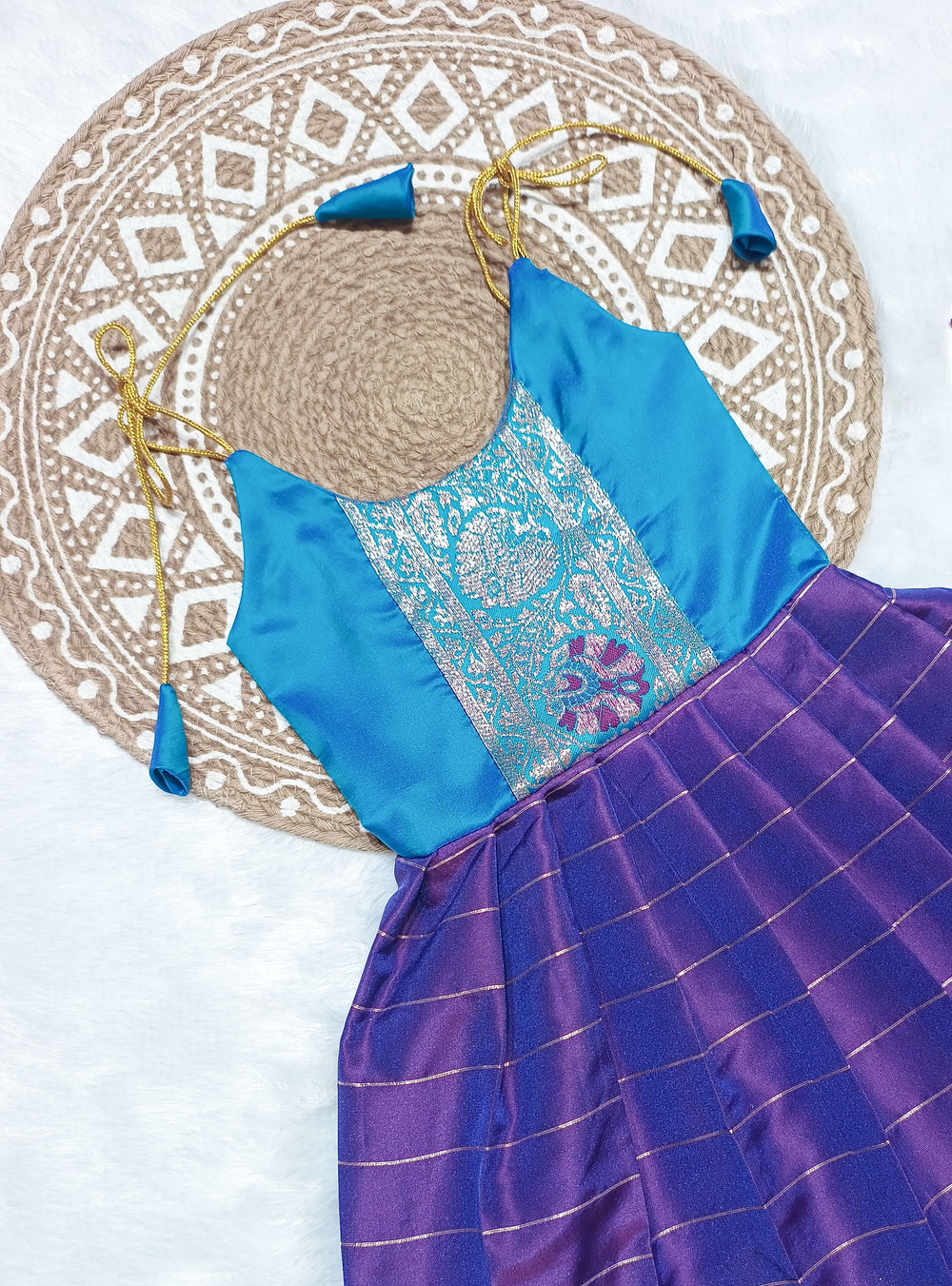 Ajanya - Pink Green Frock-Cum-Romper Minipattu