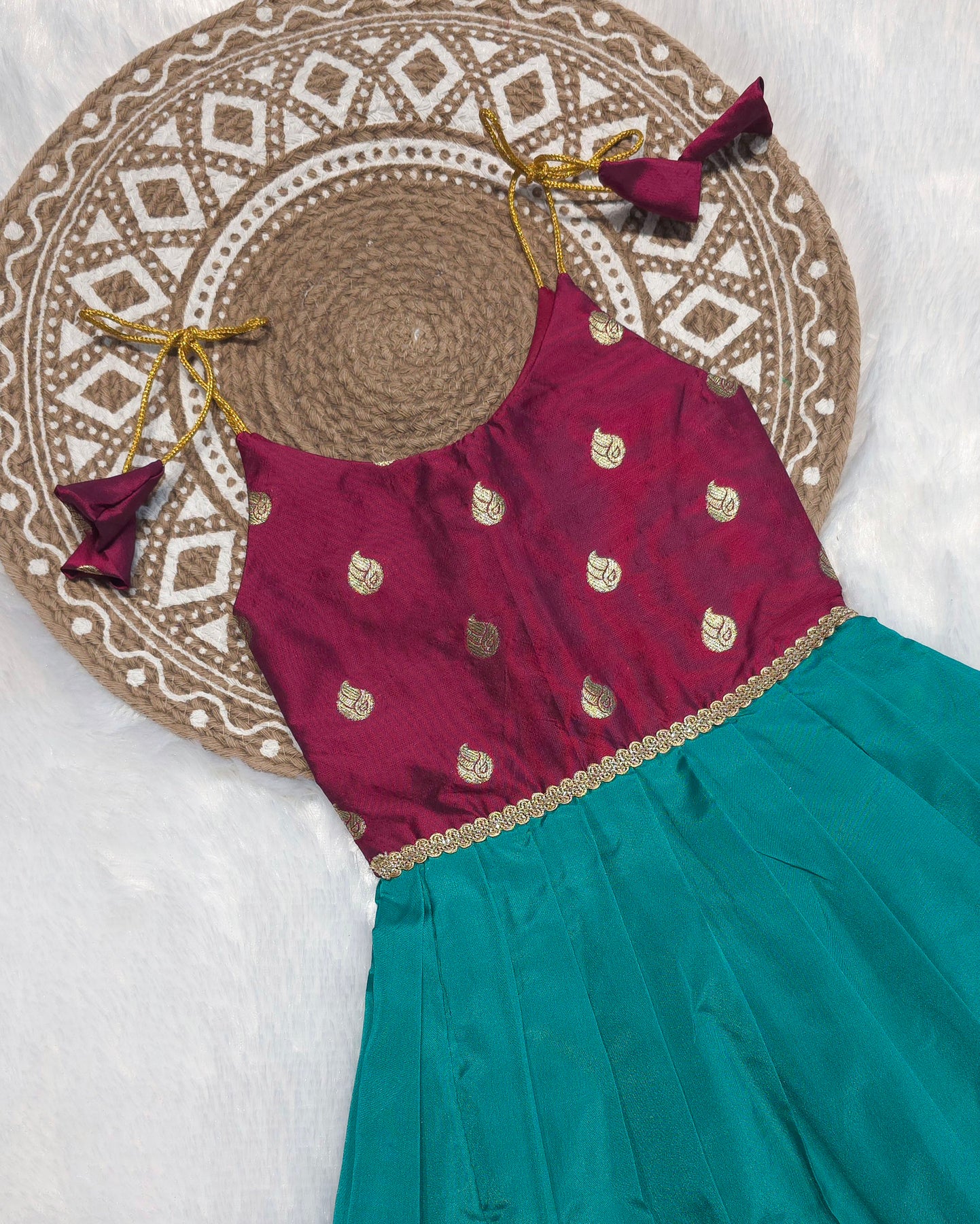 | Color: | Navya - Burgundy Teal Butta Frock |