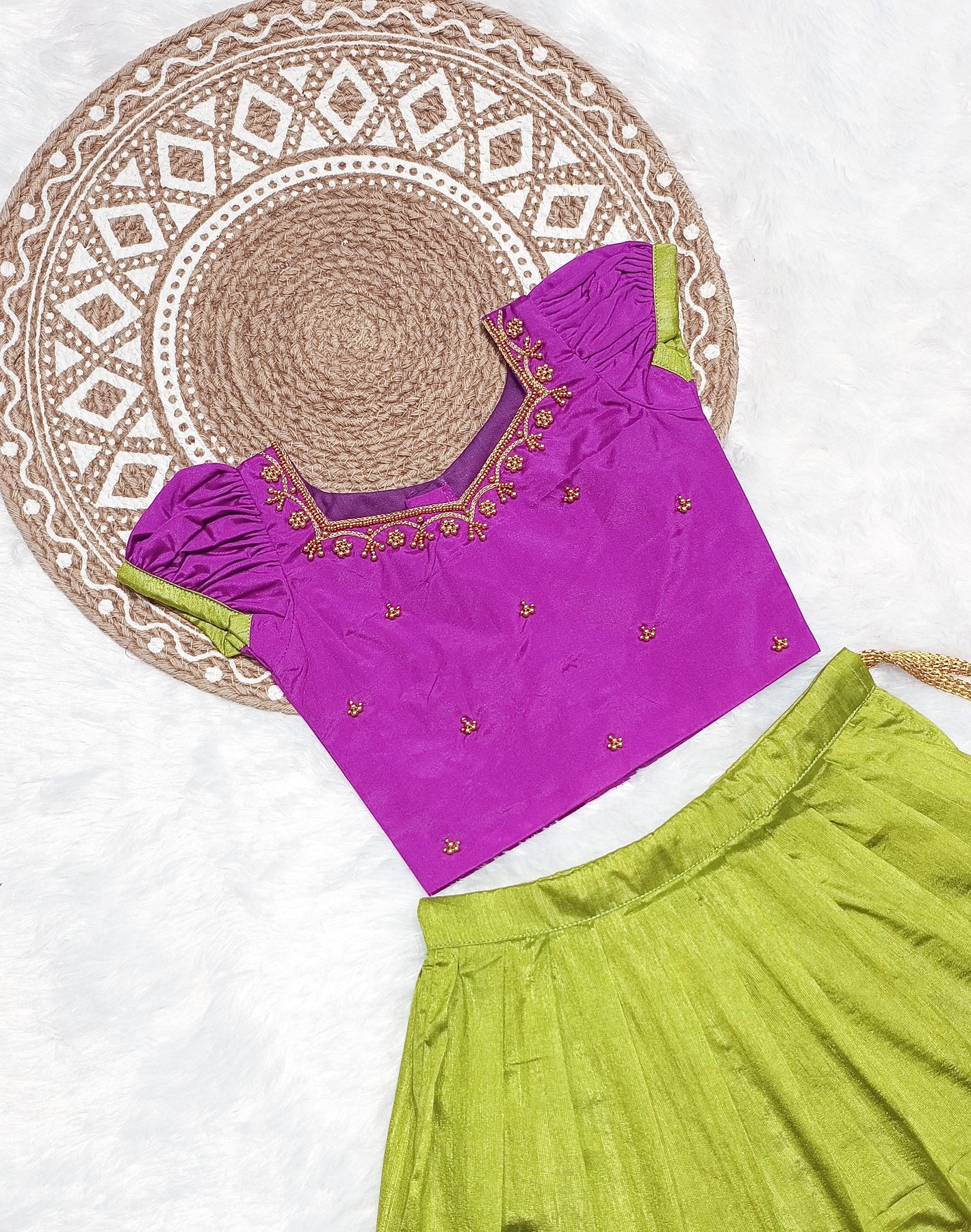 | Color: | Vedha - Magenta Green Designer Minipattu |
