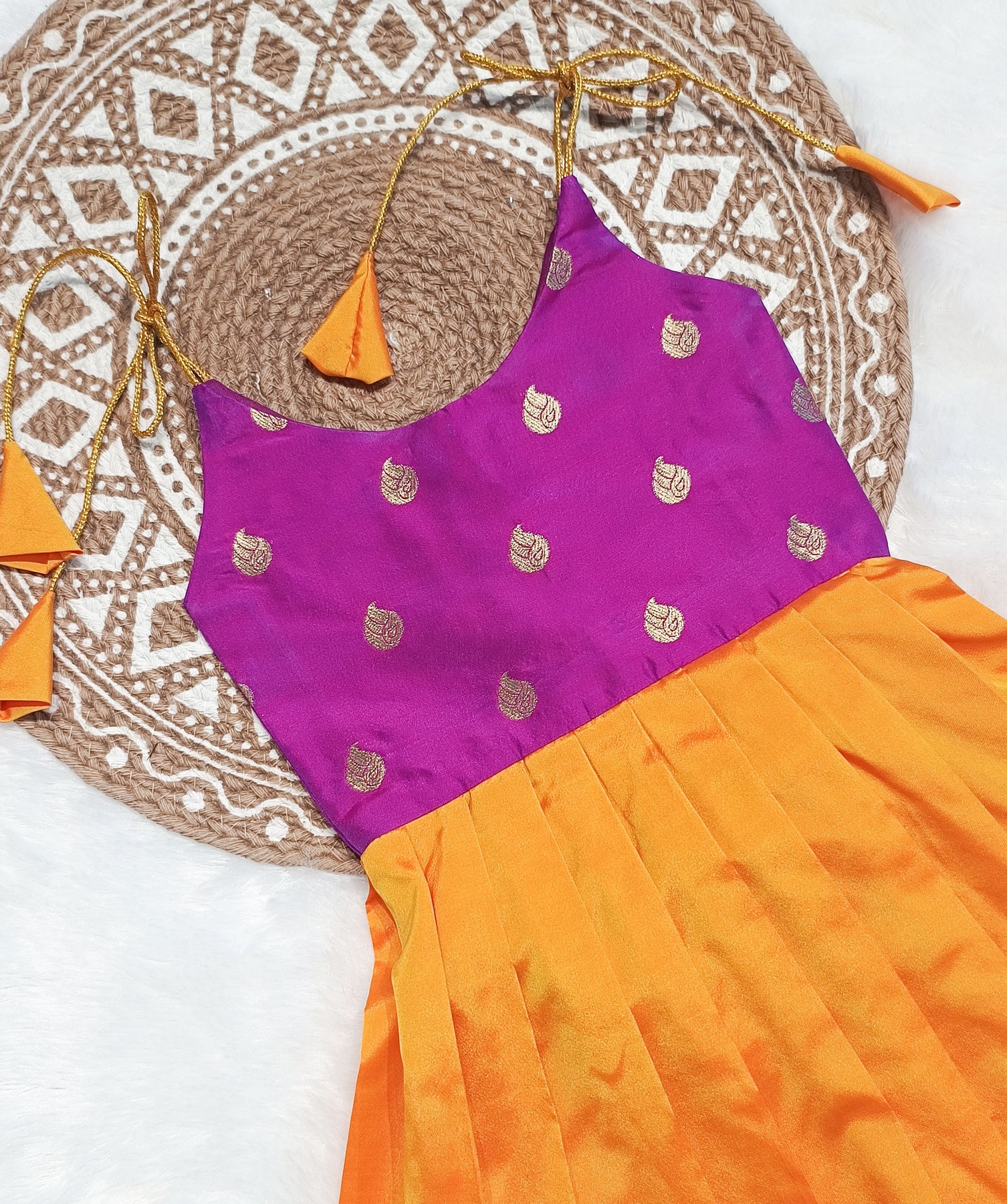 | Color: | Vinusha - Magenta Yellow Frock-Cum-Romper Minipattu |