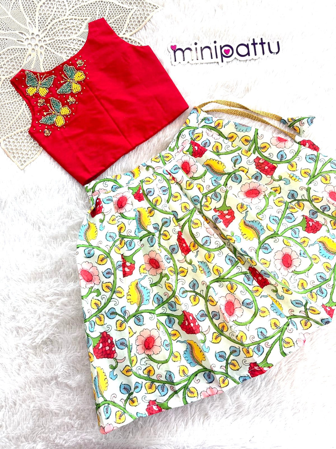 MiniPattu offers a delightful collection of traditional skirts paired with matching tops for kids. Our...