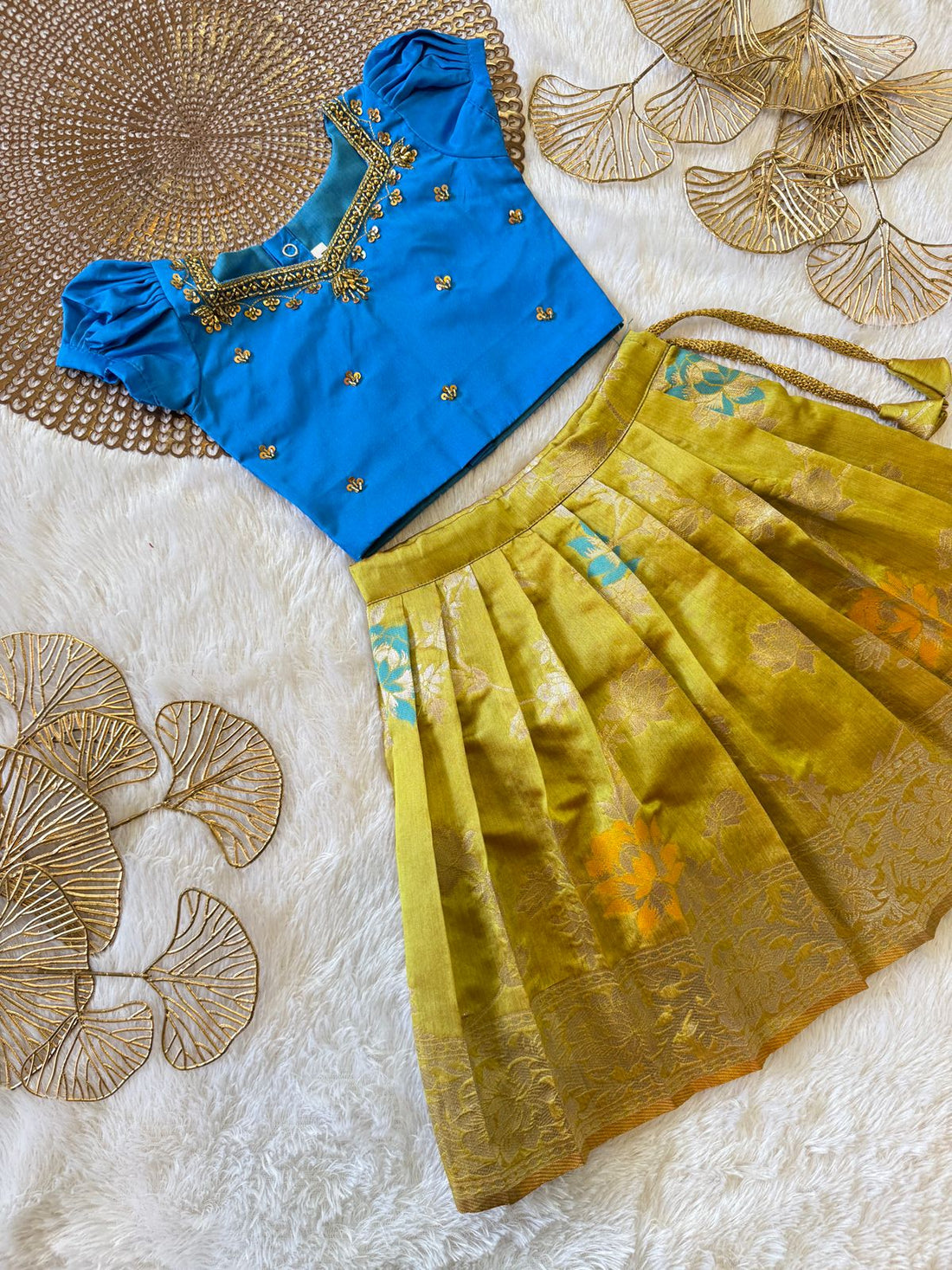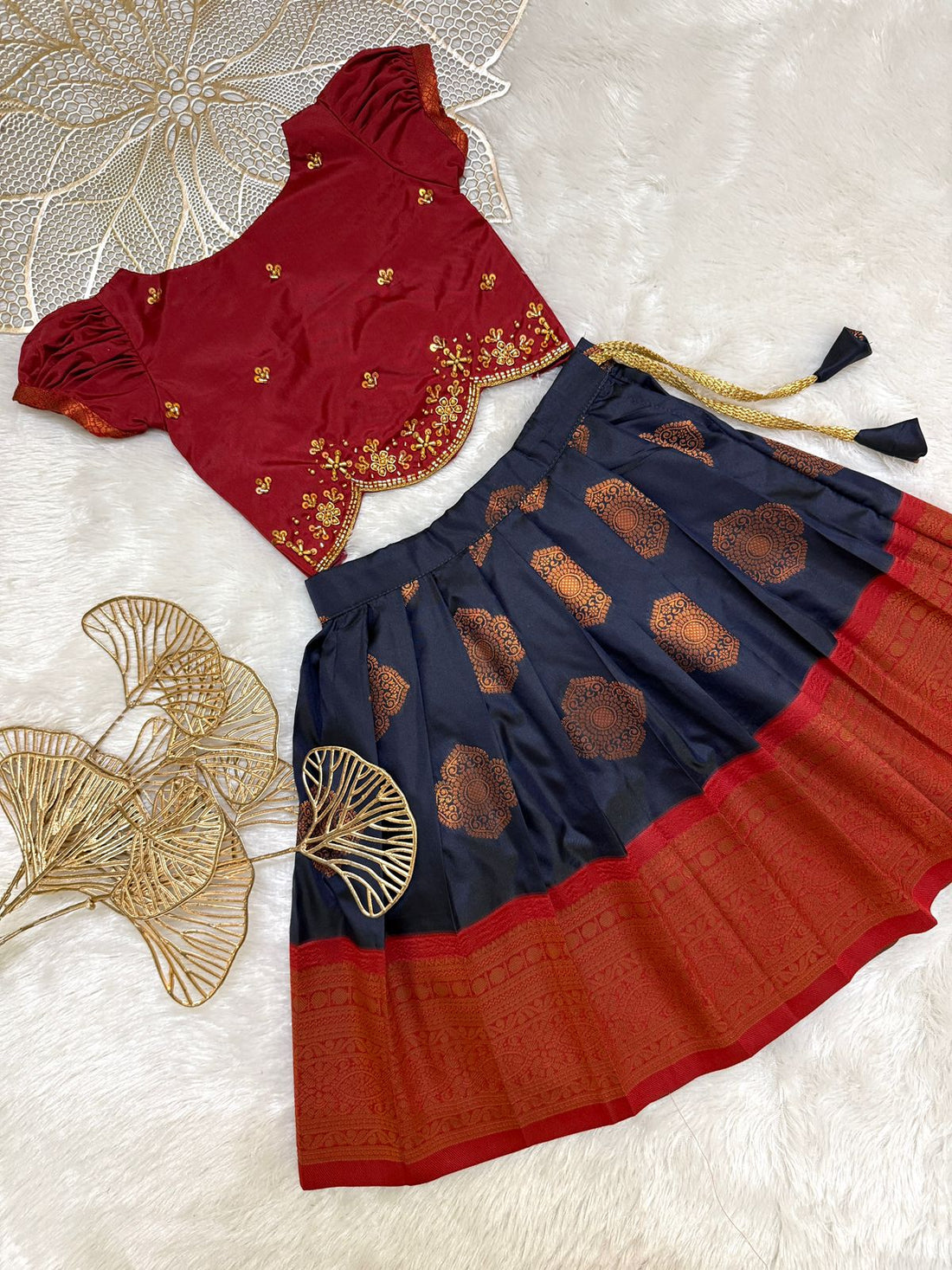 MiniPattu offers a delightful collection of traditional skirts paired with matching tops for kids. Our...