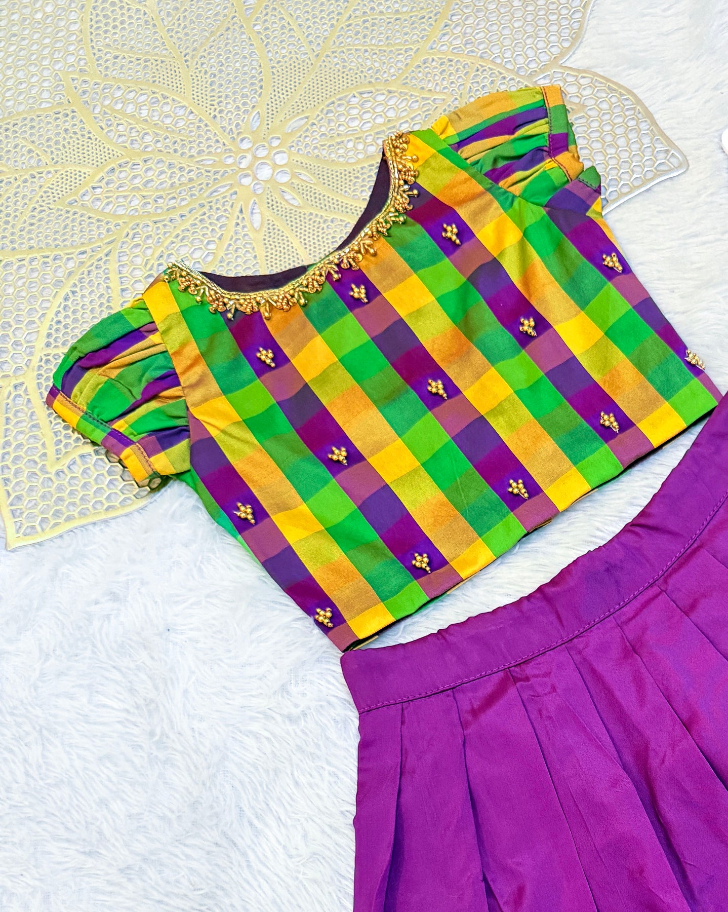 Color: Kanimozhi - Magenta Checks Designer Minipattu