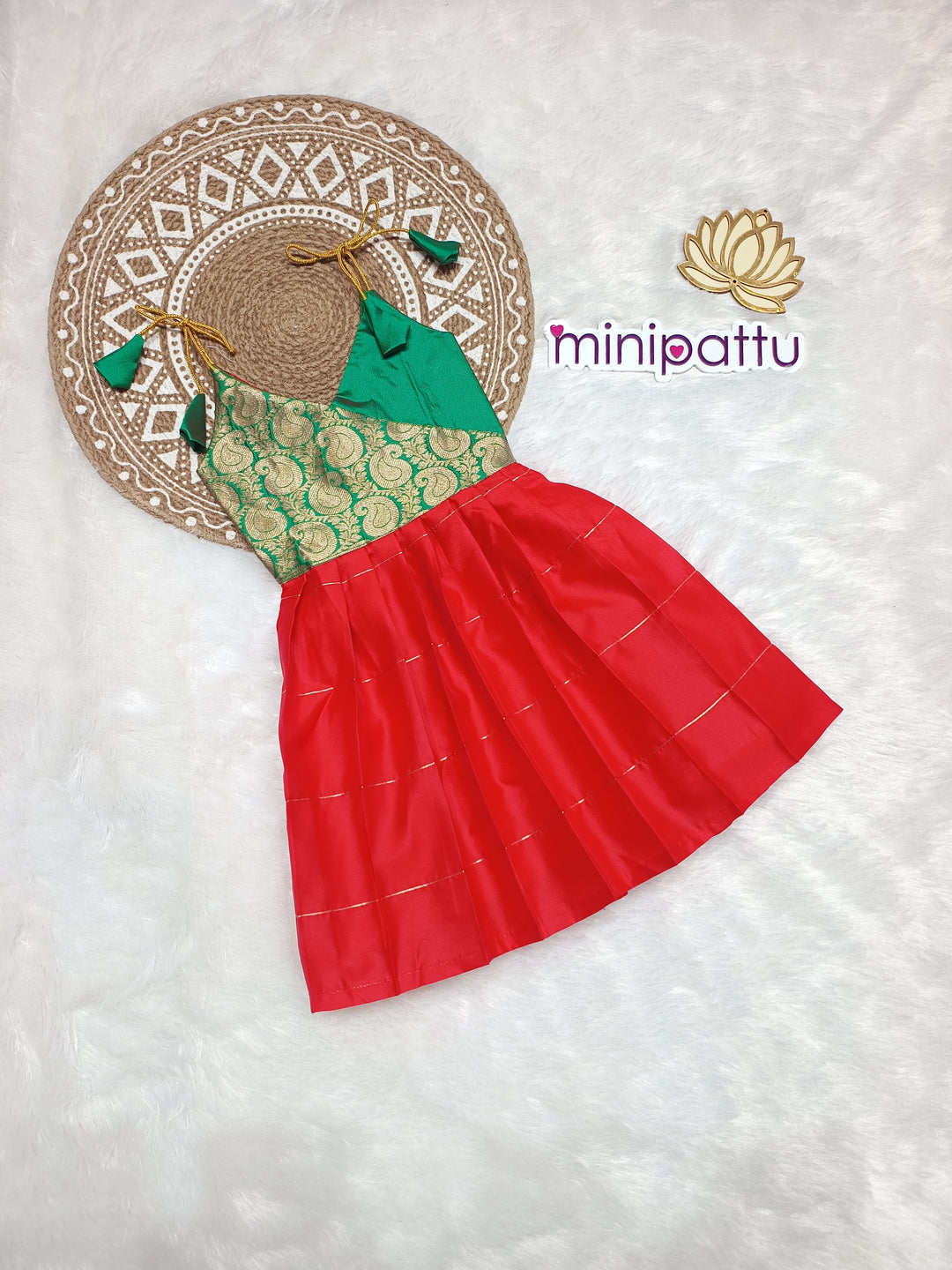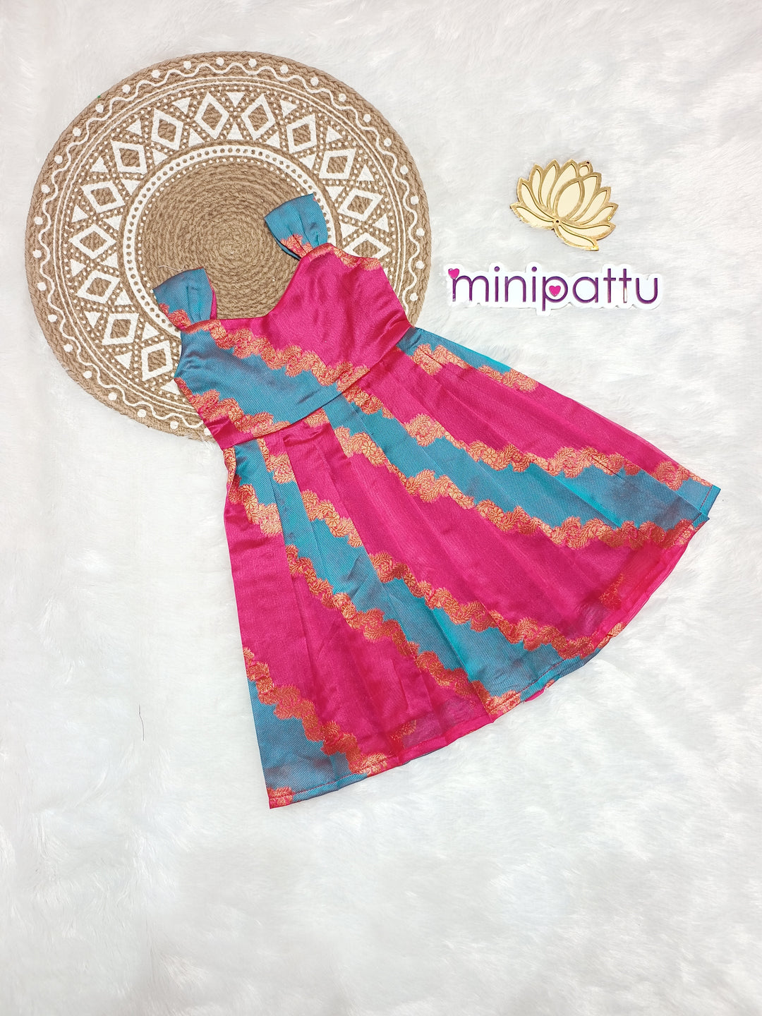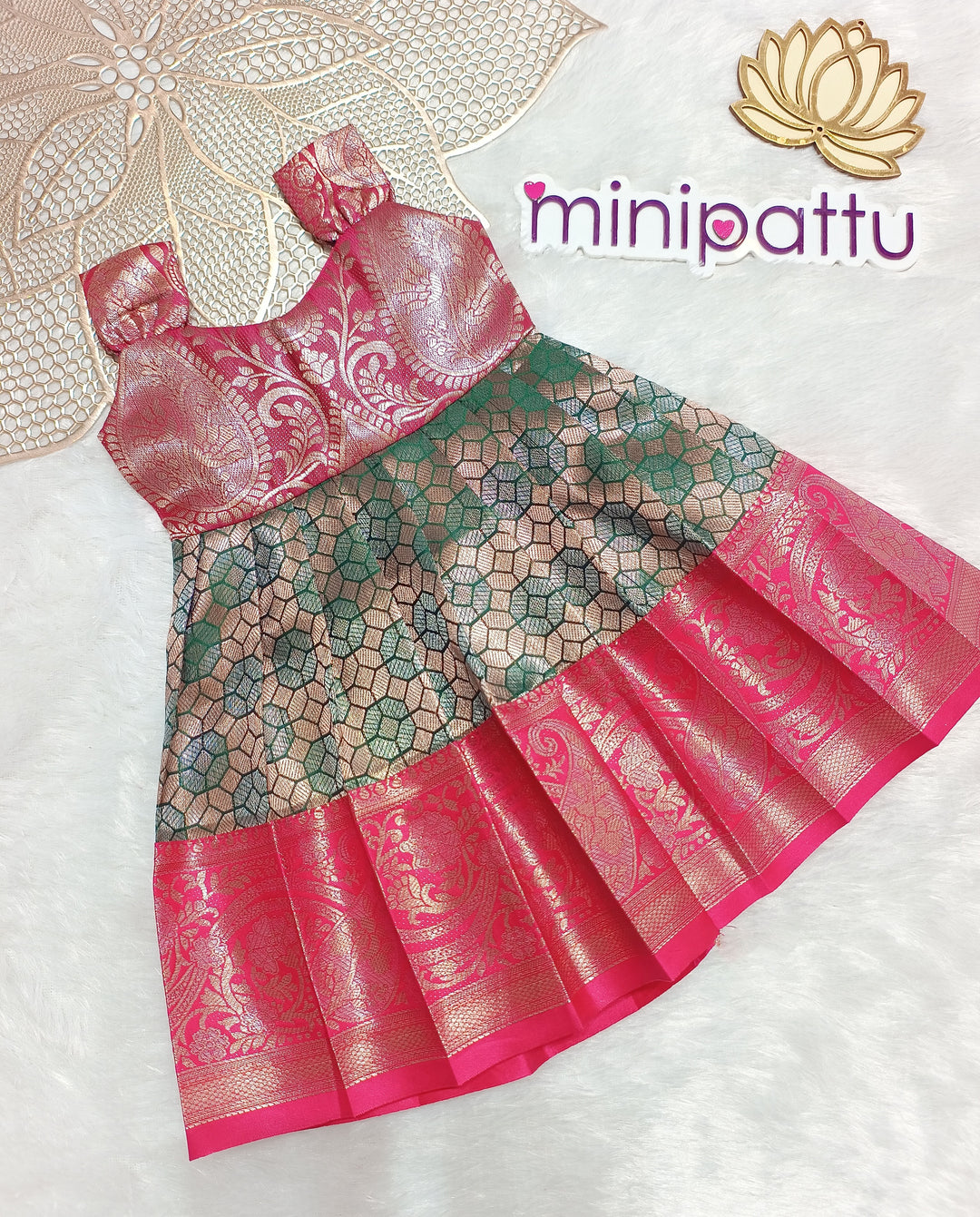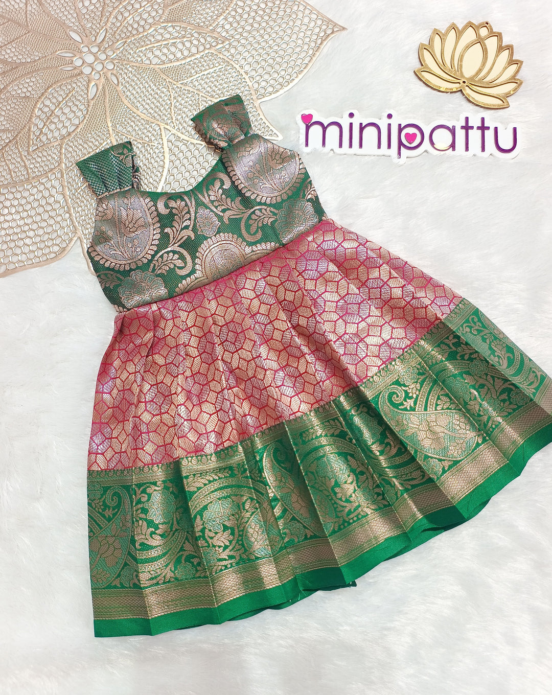 Ajanya - Pink Green Frock-Cum-Romper Minipattu