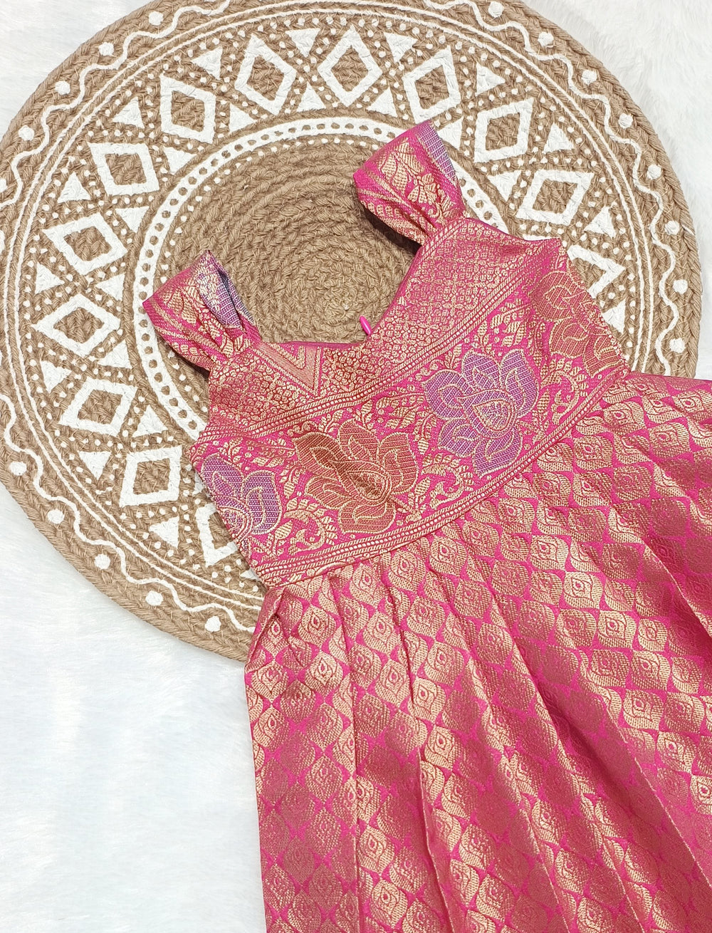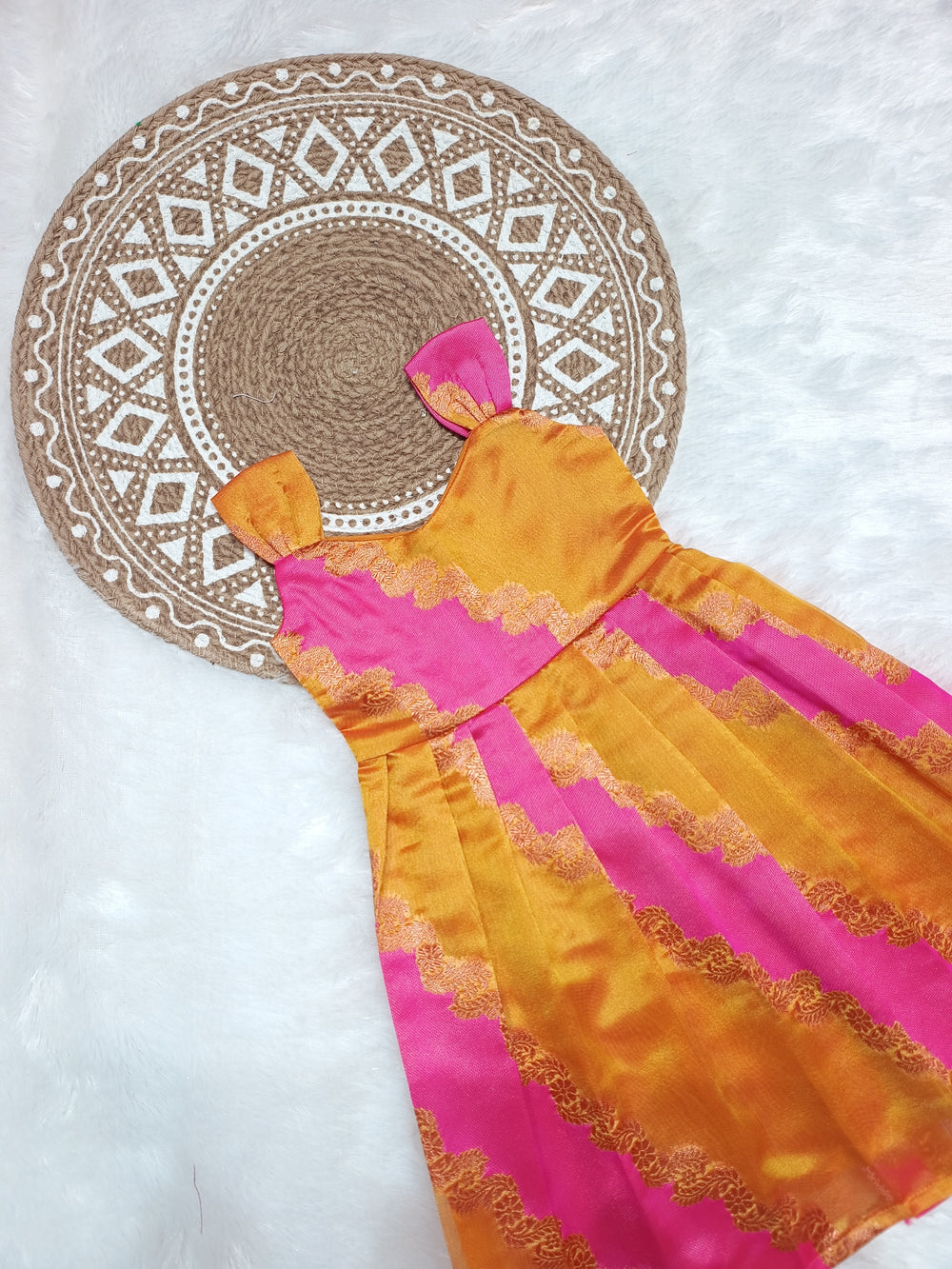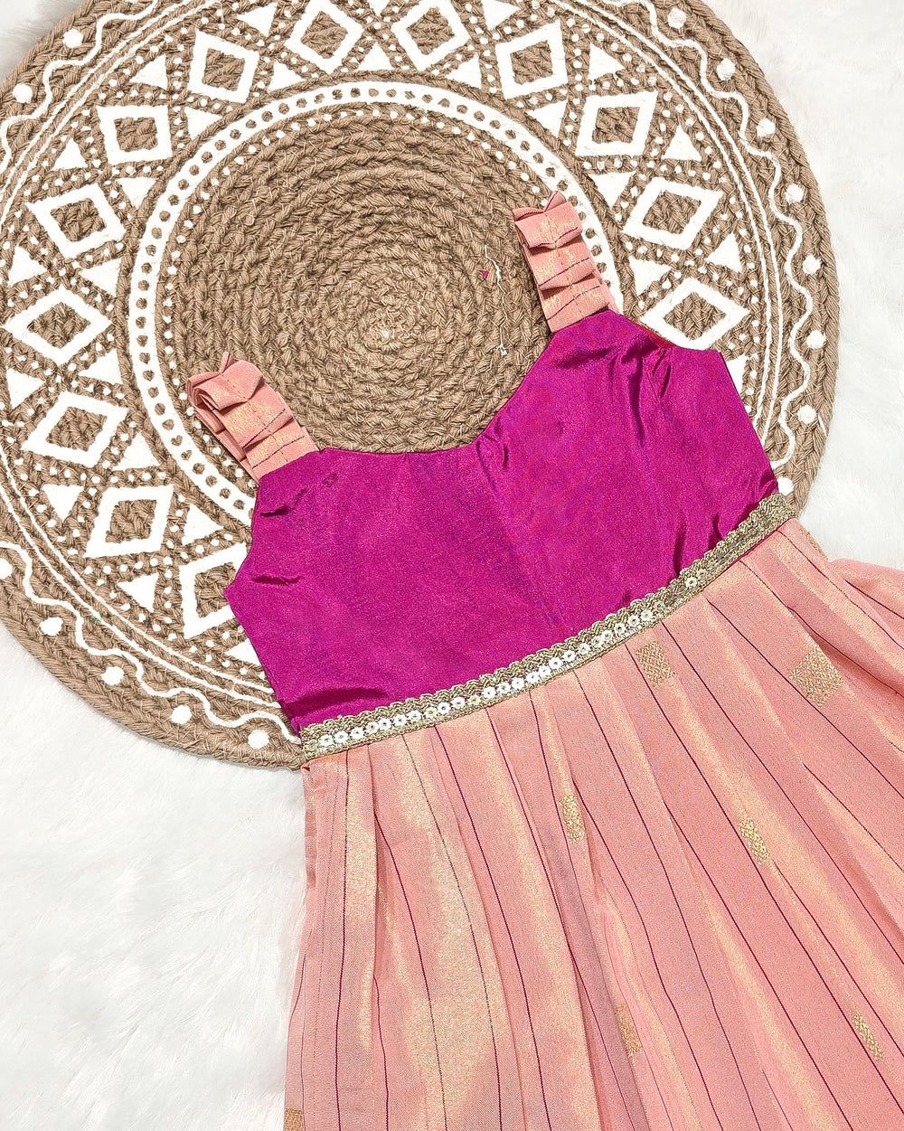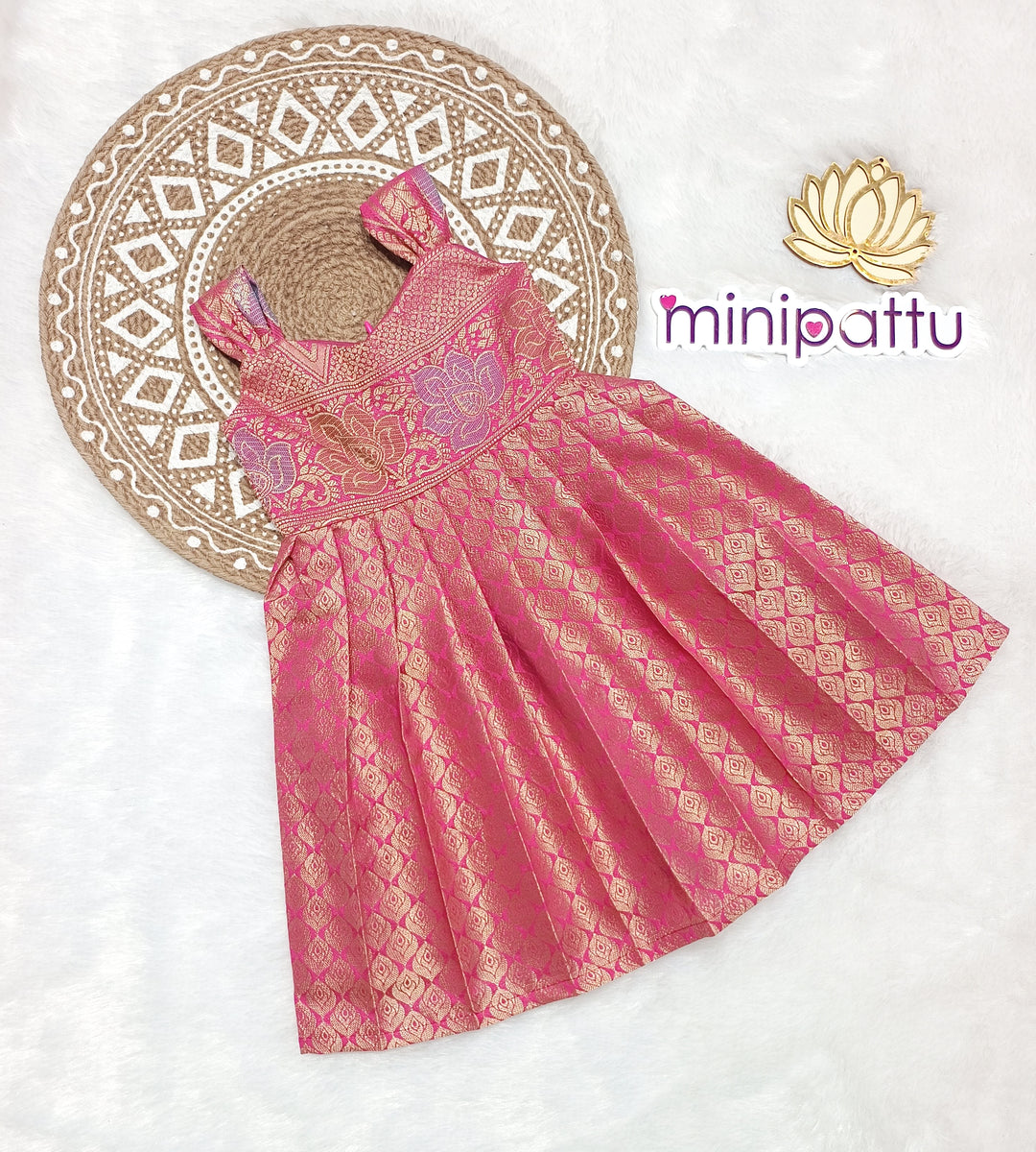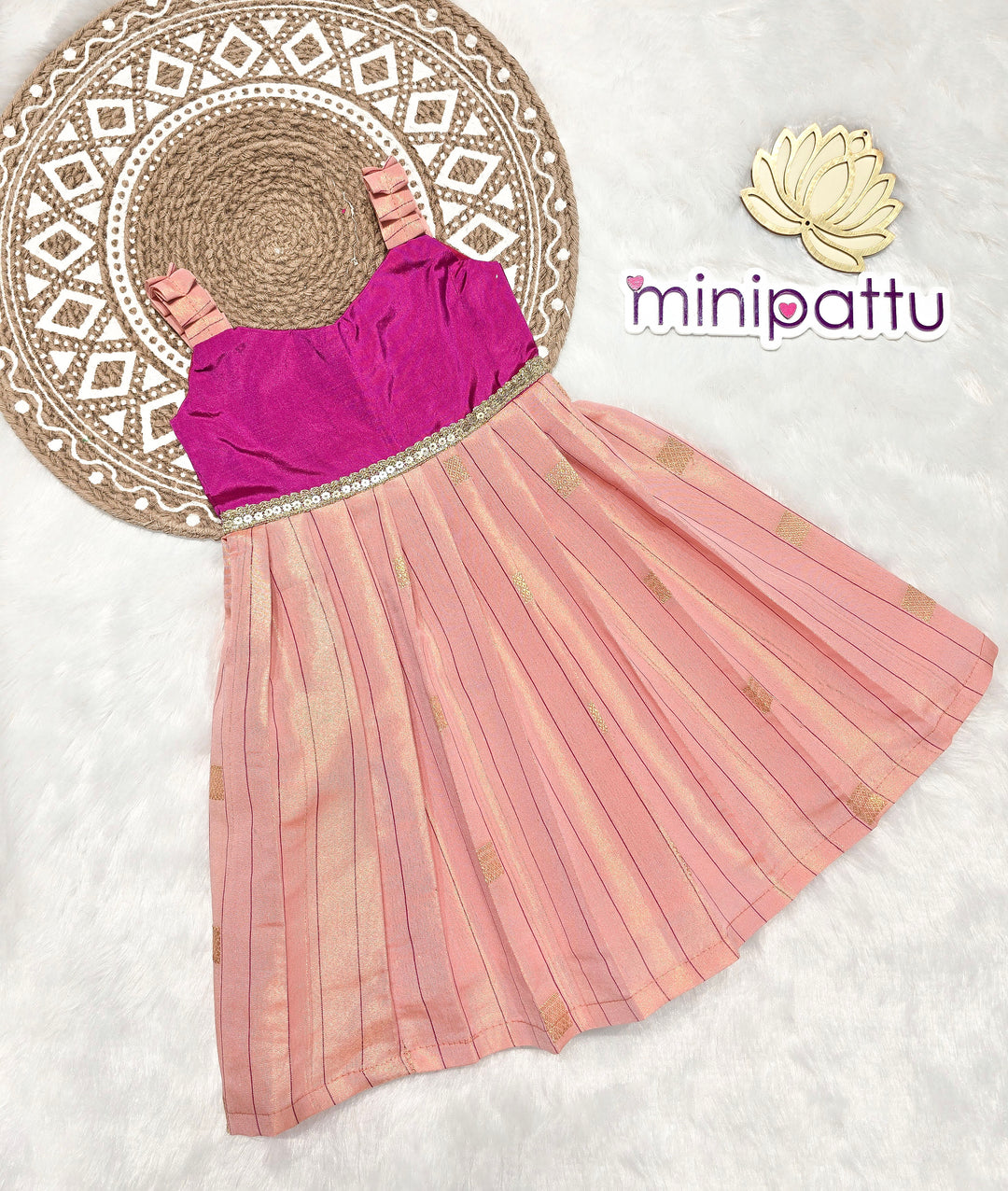 Ajanya - Pink Green Frock-Cum-Romper Minipattu