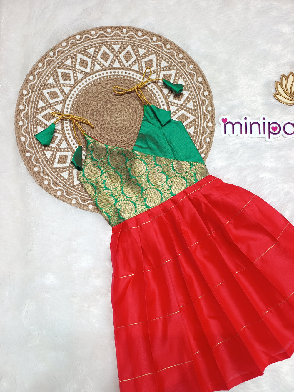 Ajanya - Green Rust Frock-Cum-Romper Minipattu