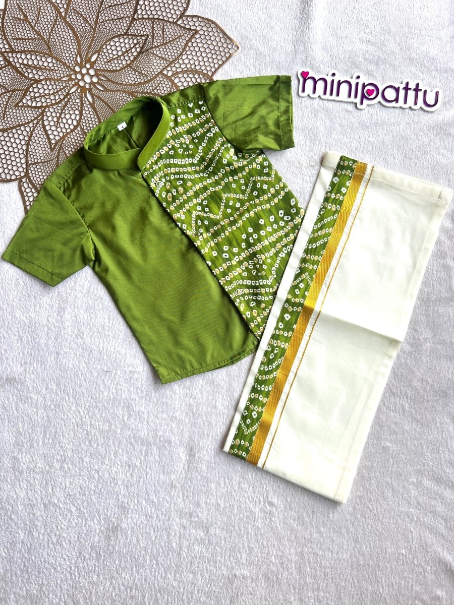 Yathra - Green Bandhini Kurta Shirt & Dhothi Set