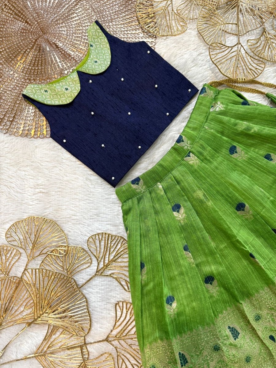 Nikita - Green Navy Blue Designer Minipattu