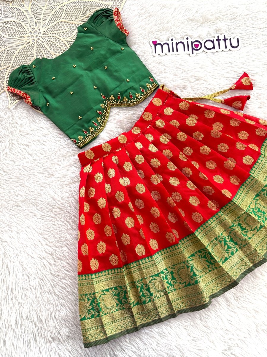 Paavai - Green Red Designer Minipattu