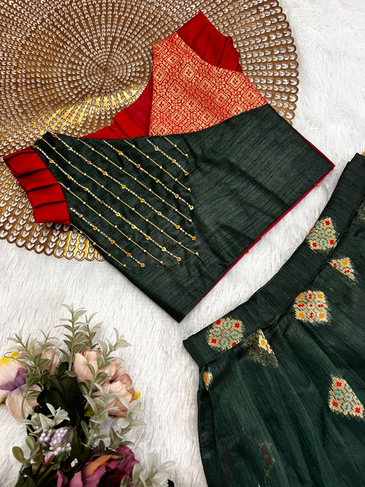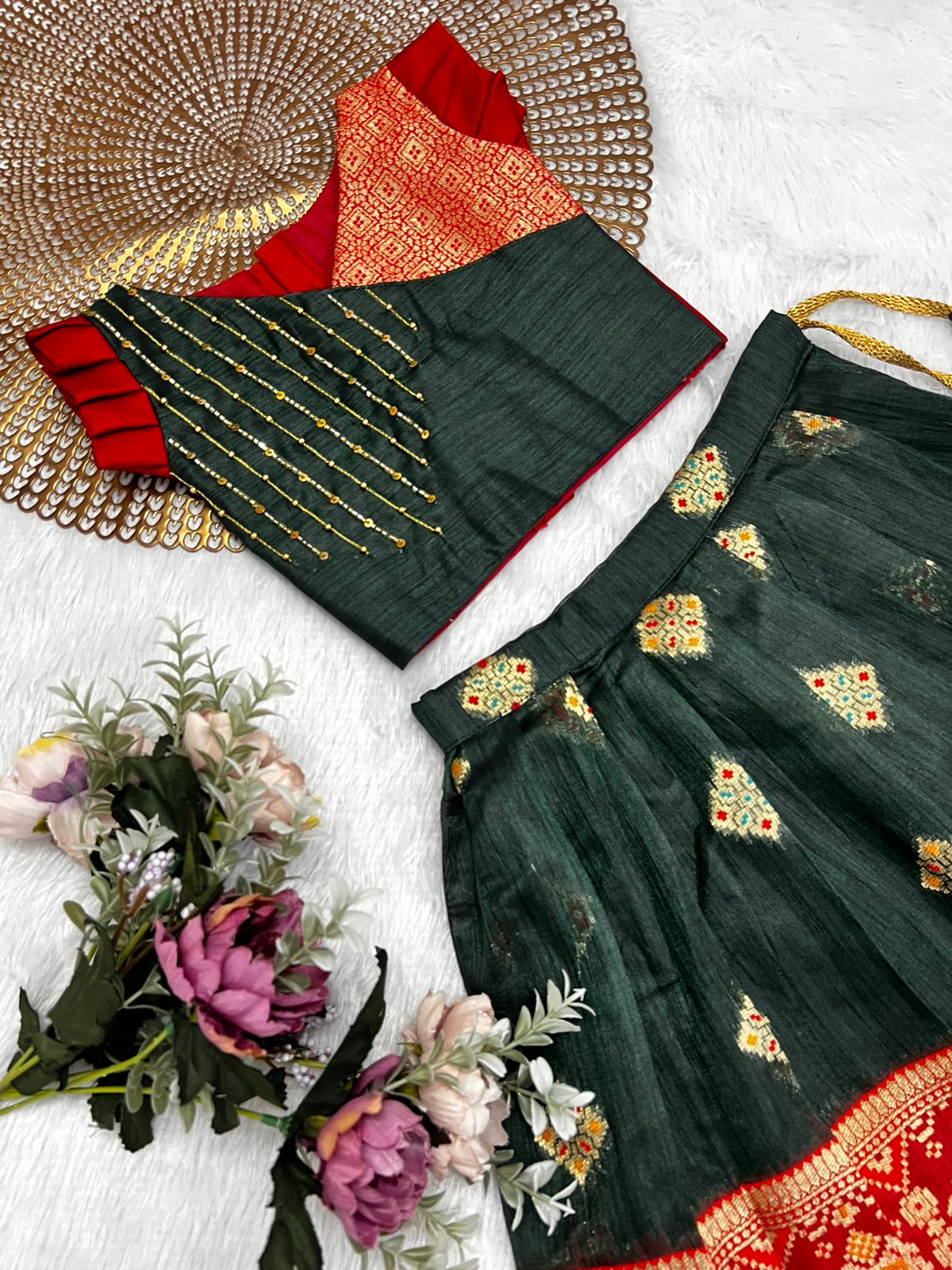 Lekha - Bottle Green Red Patola Designer Minipattu