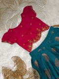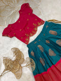 Color: | Radhi - Pink Teal Blue Designer Minipattu |