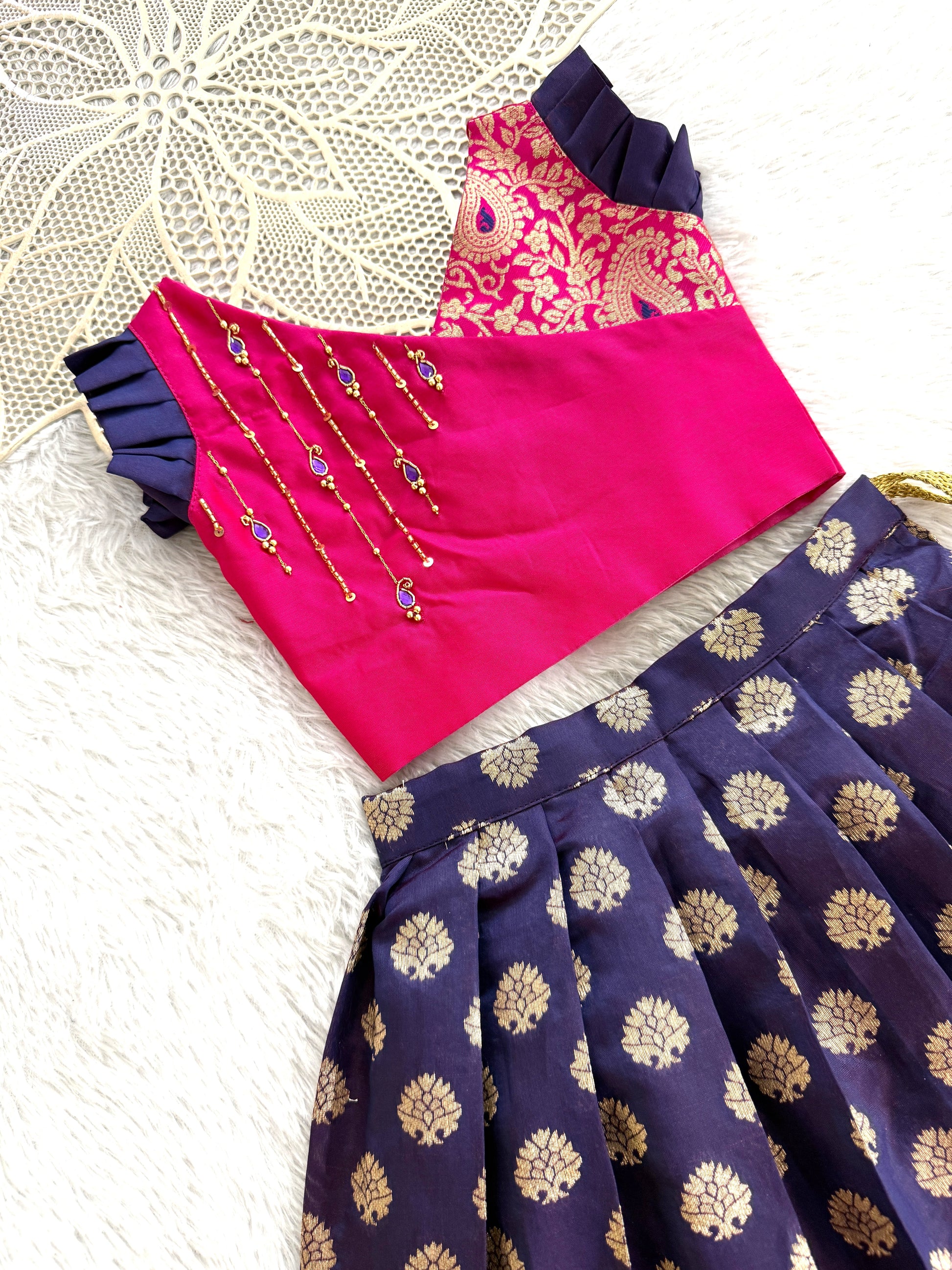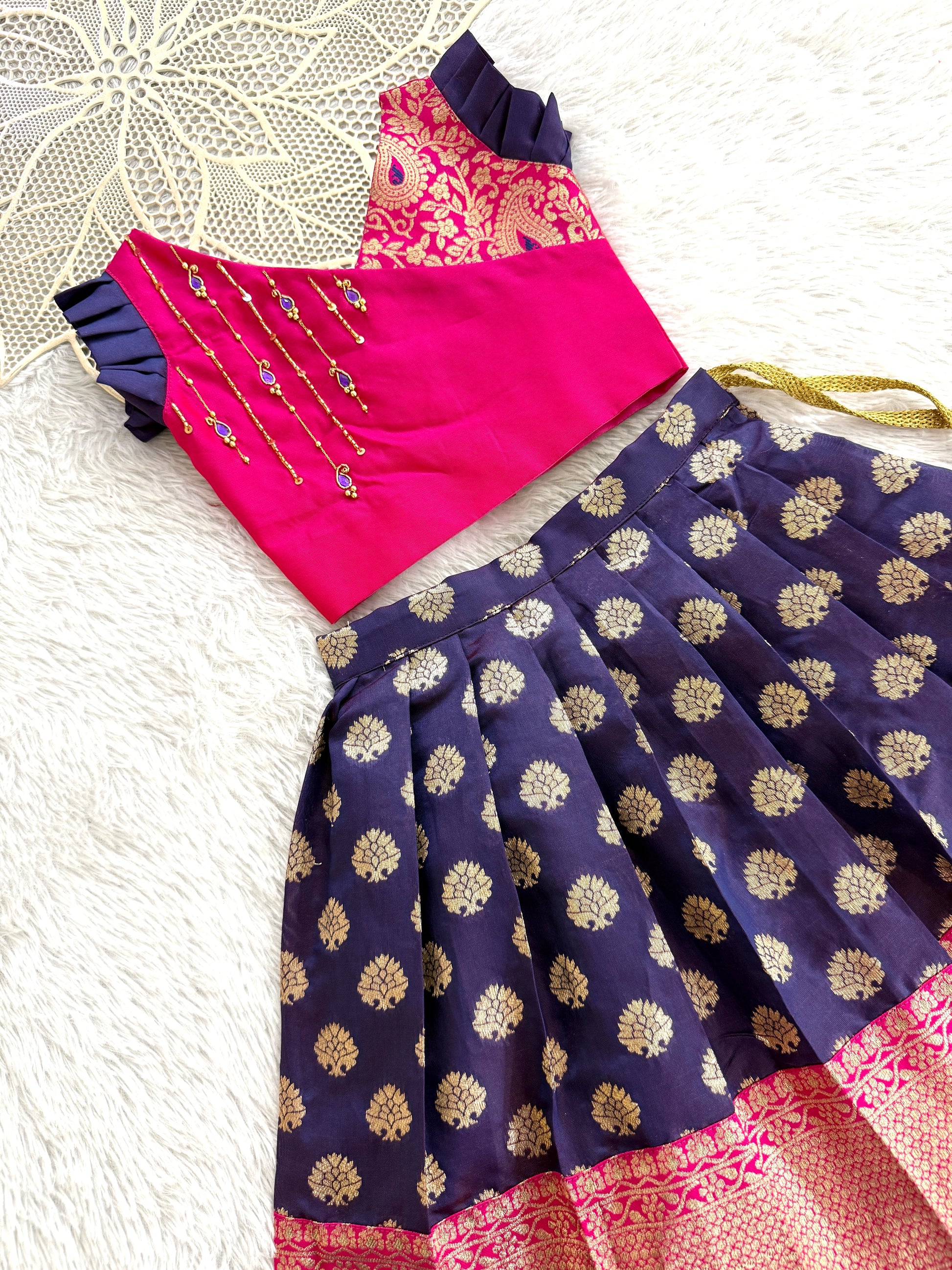 Set Includes: | Pattu pavadai with Cotton lining |