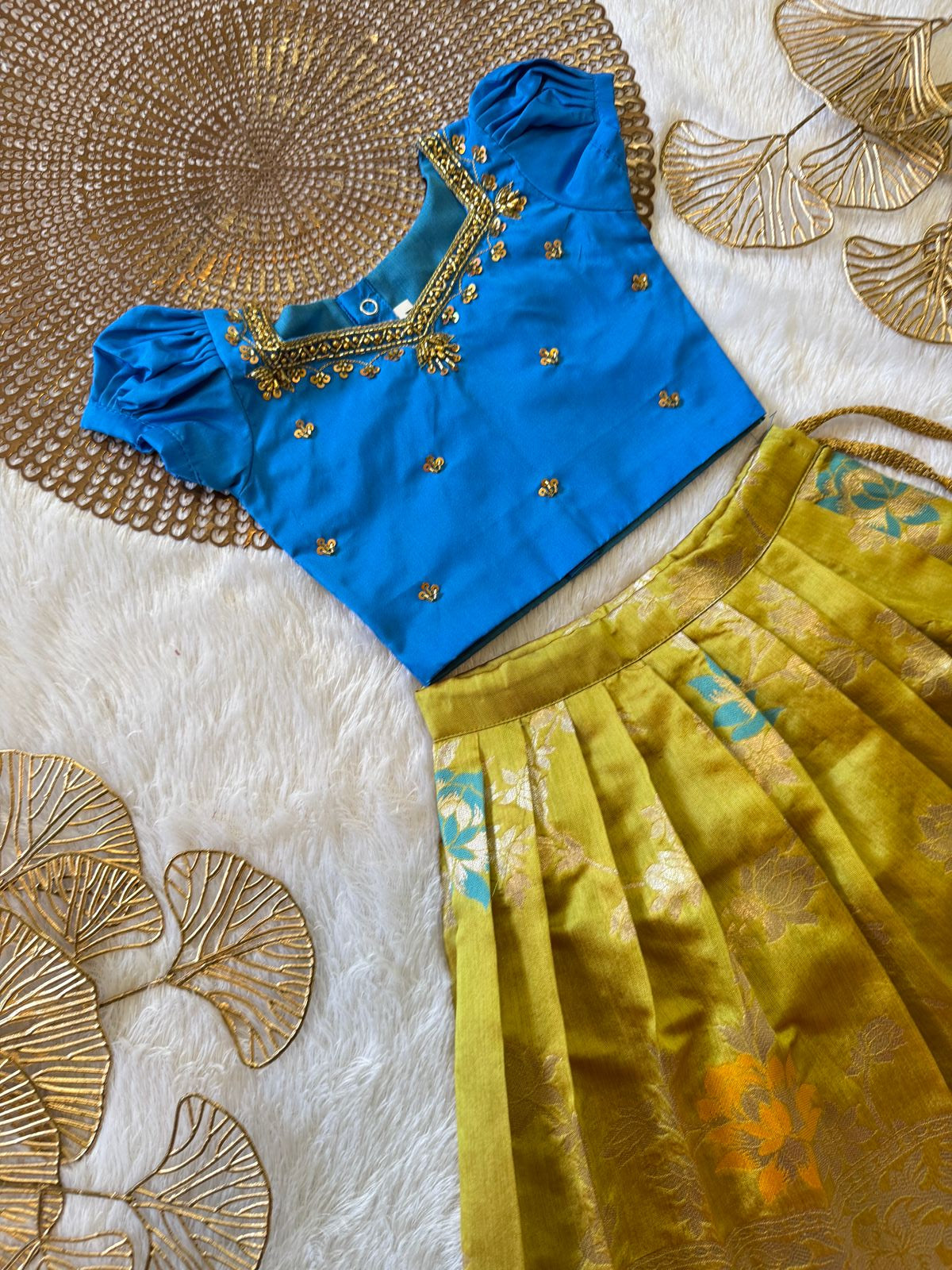 Set Includes: | Pattu pavadai with Cotton lining |