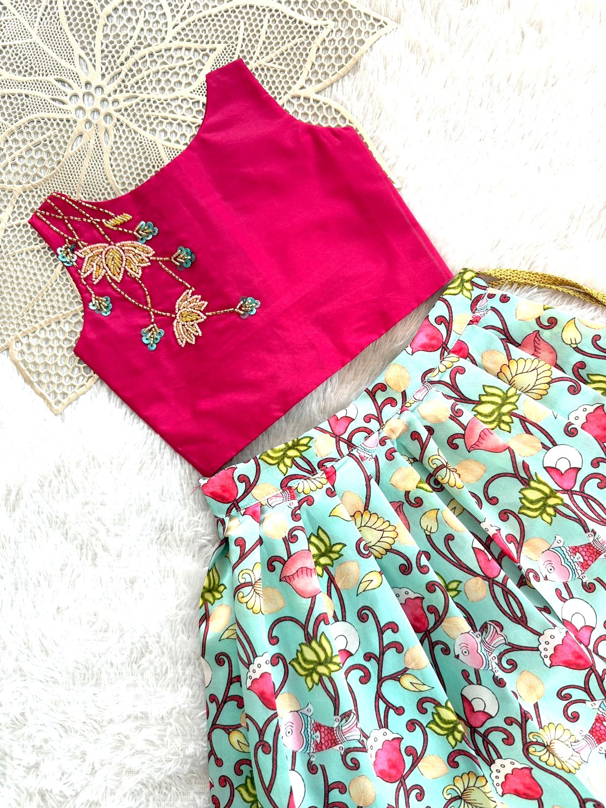 Color: | Varnika - Pink Kalamkari Minipattu |