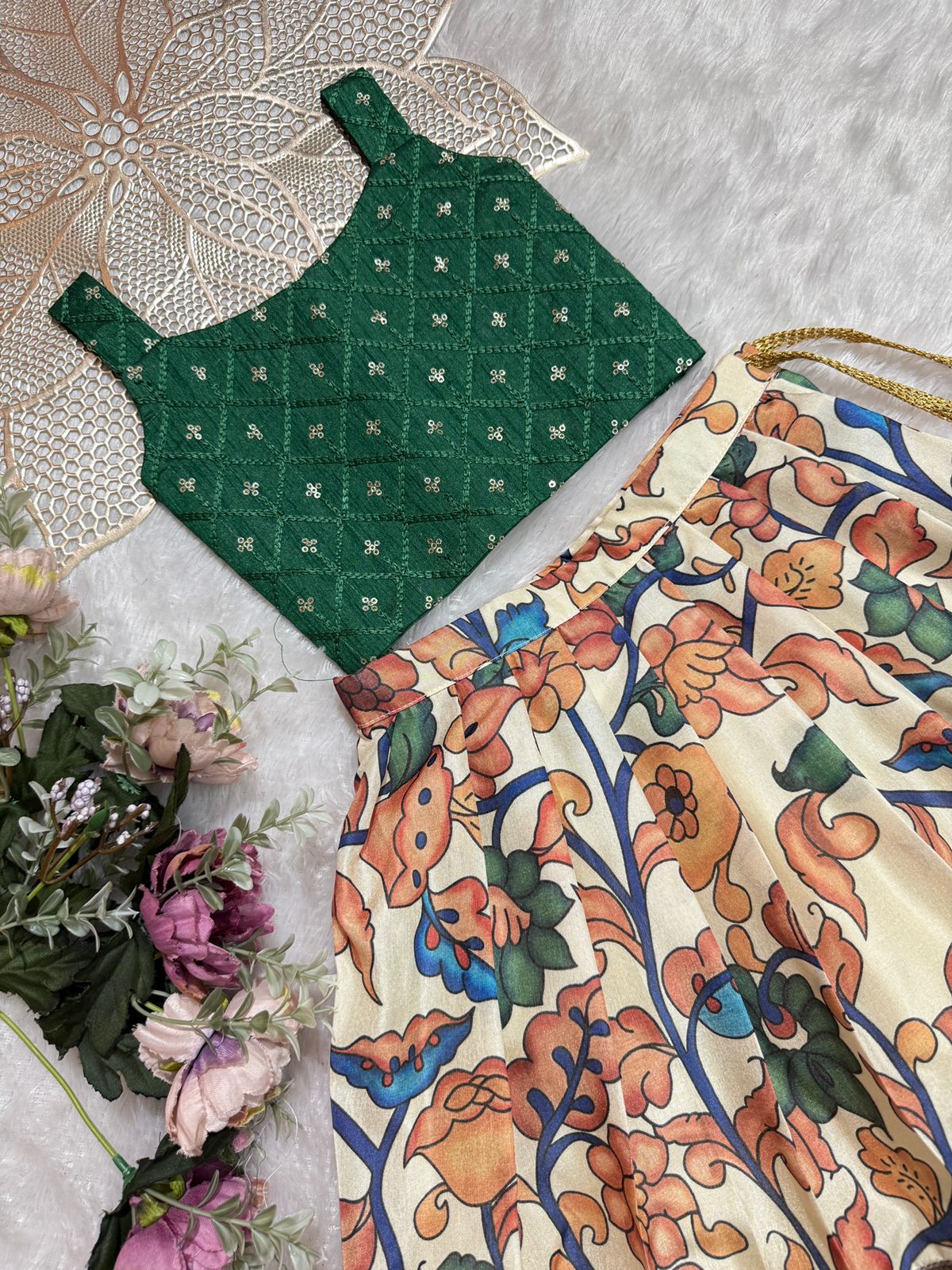 Set Includes: | Top and Skirt with Cotton lining , Handwork Embroidery |